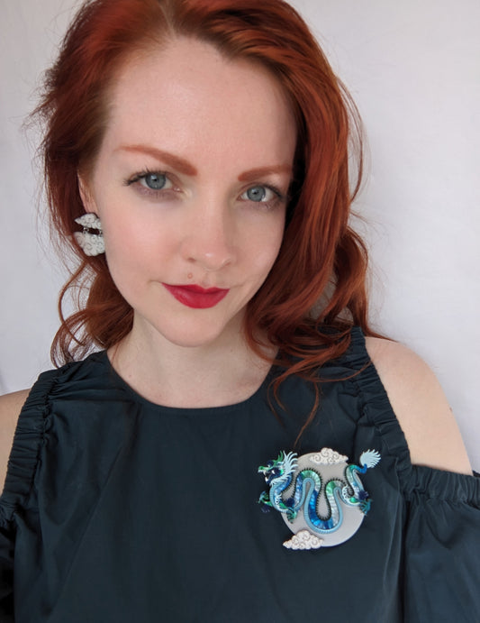 PRE ORDER Chinese Dragon Brooch or Necklace BLUE/GREEN