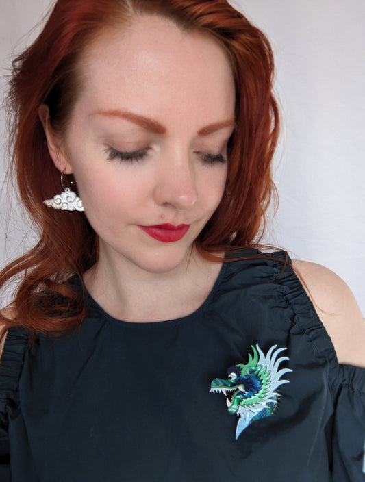 PRE ORDER Chinese Dragon Head Brooch BLUE/GREEN