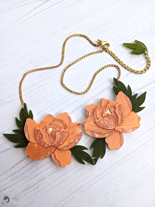 PRE ORDER Statement Peony Necklace - Apricot