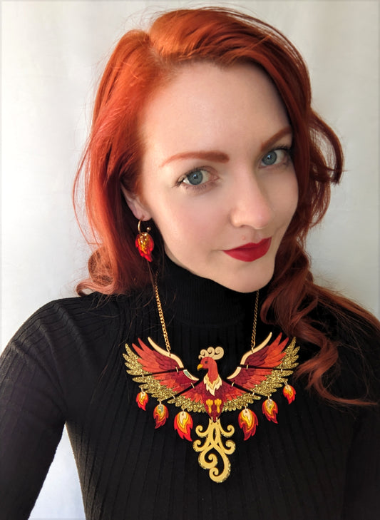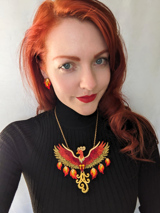 PRE ORDER Statement Rise Of The Phoenix Necklace (regular jump rings, 3 tail colours)