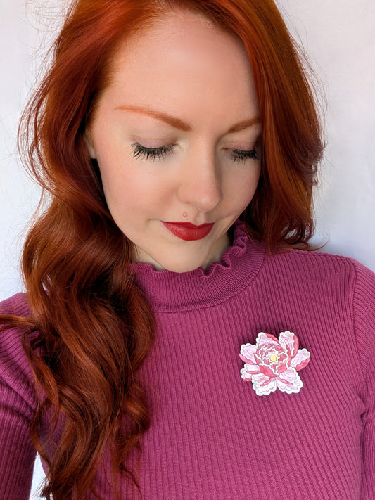 PRE ORDER Peony Inspired Flower Brooch or Pendant PALE PINK