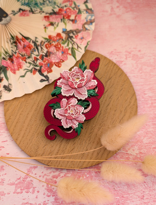 PRE ORDER Snake & Floral Statement Pendant or Necklace (on side) RED