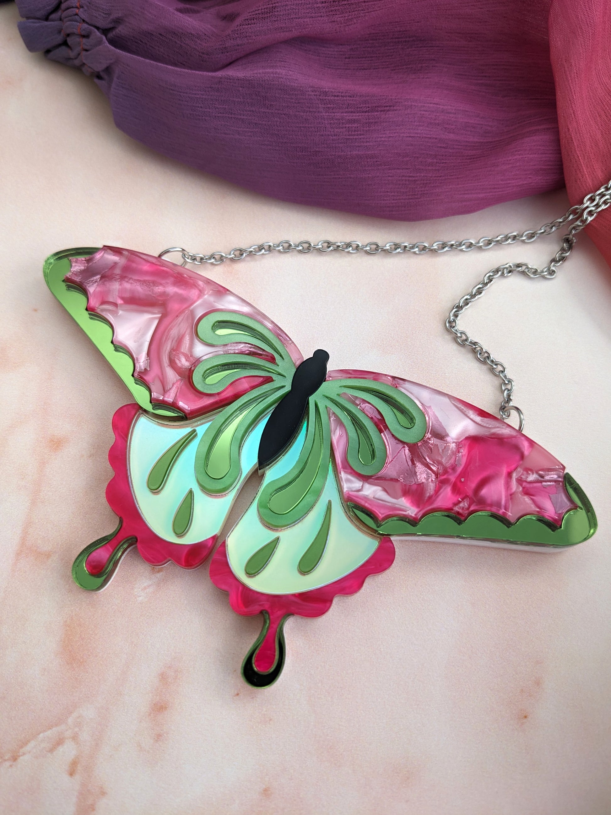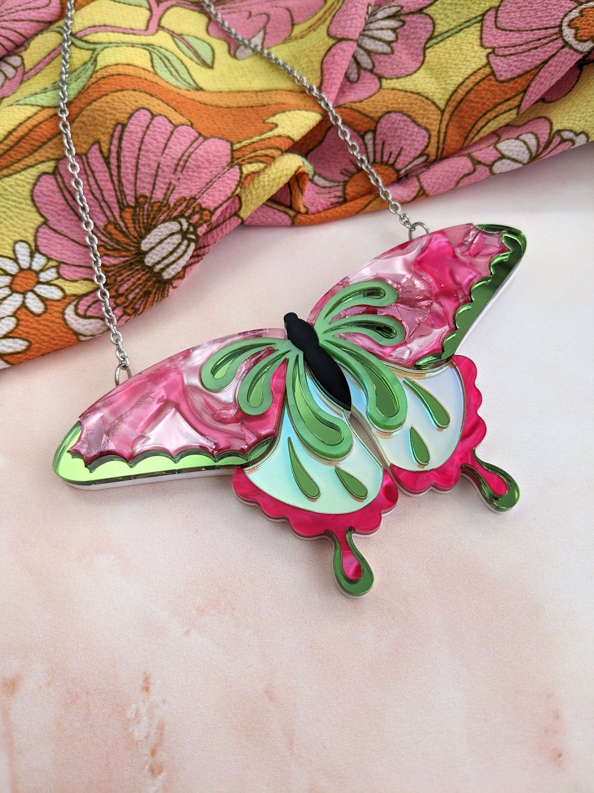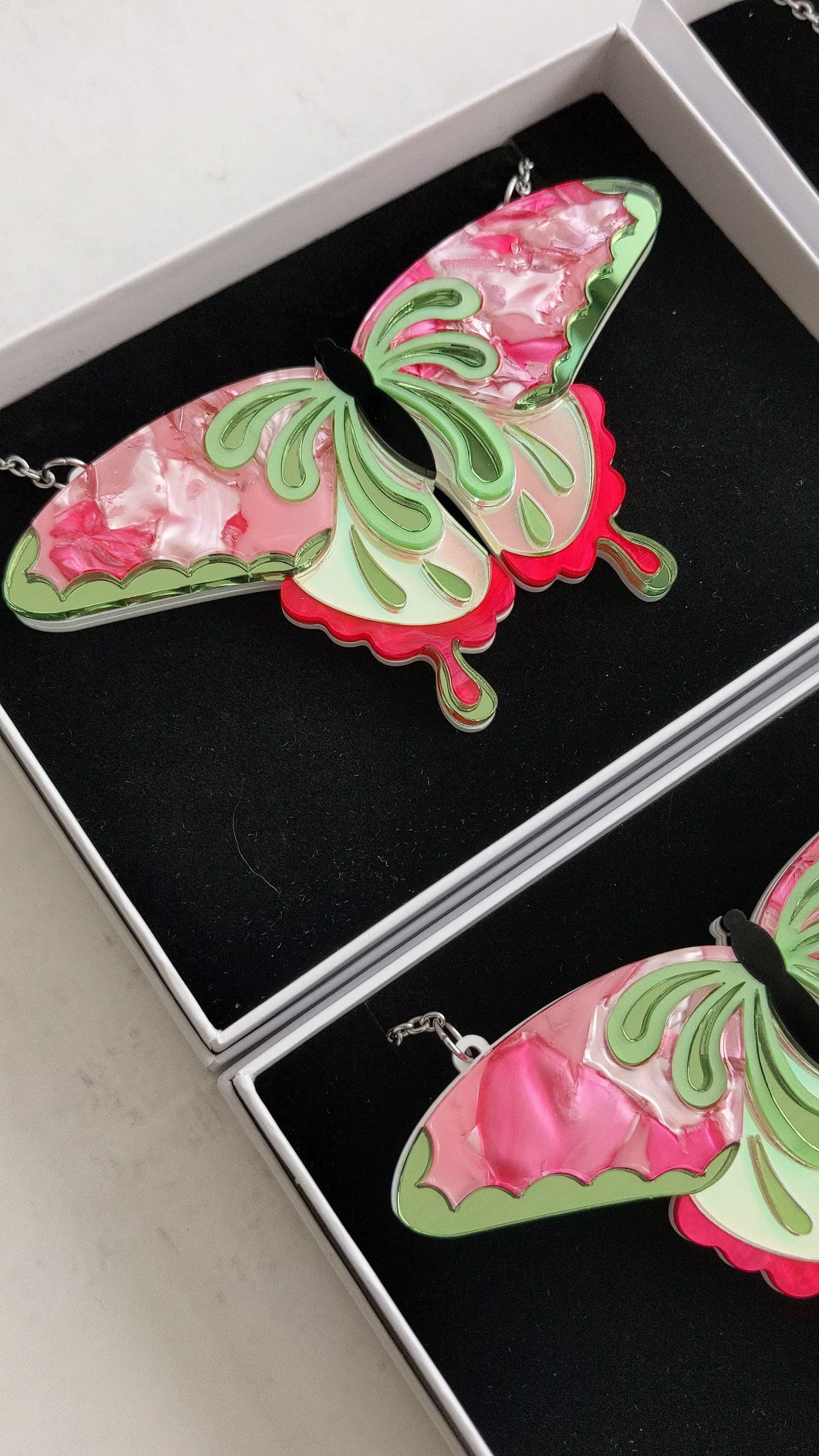 Butterfly Necklace Pink/Green (featuring in house recycled acrylic) - Last 3!