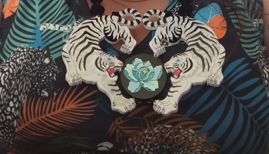 This statement double tiger necklace is a striking piece that is loosely Japanese inspired. For the white tiger version I have taken inspiration in particular from the Chinese and Japanese myth Byakko.