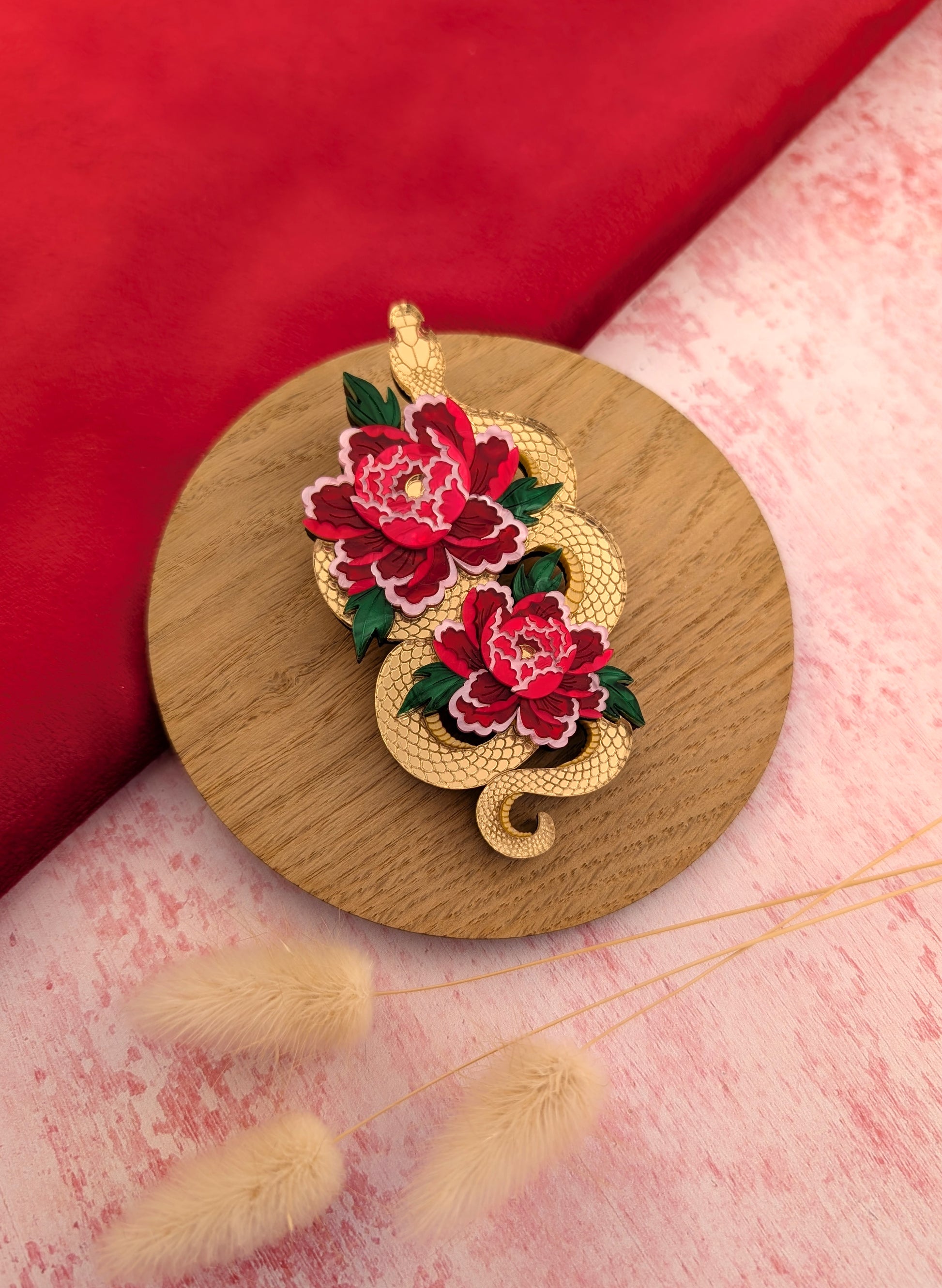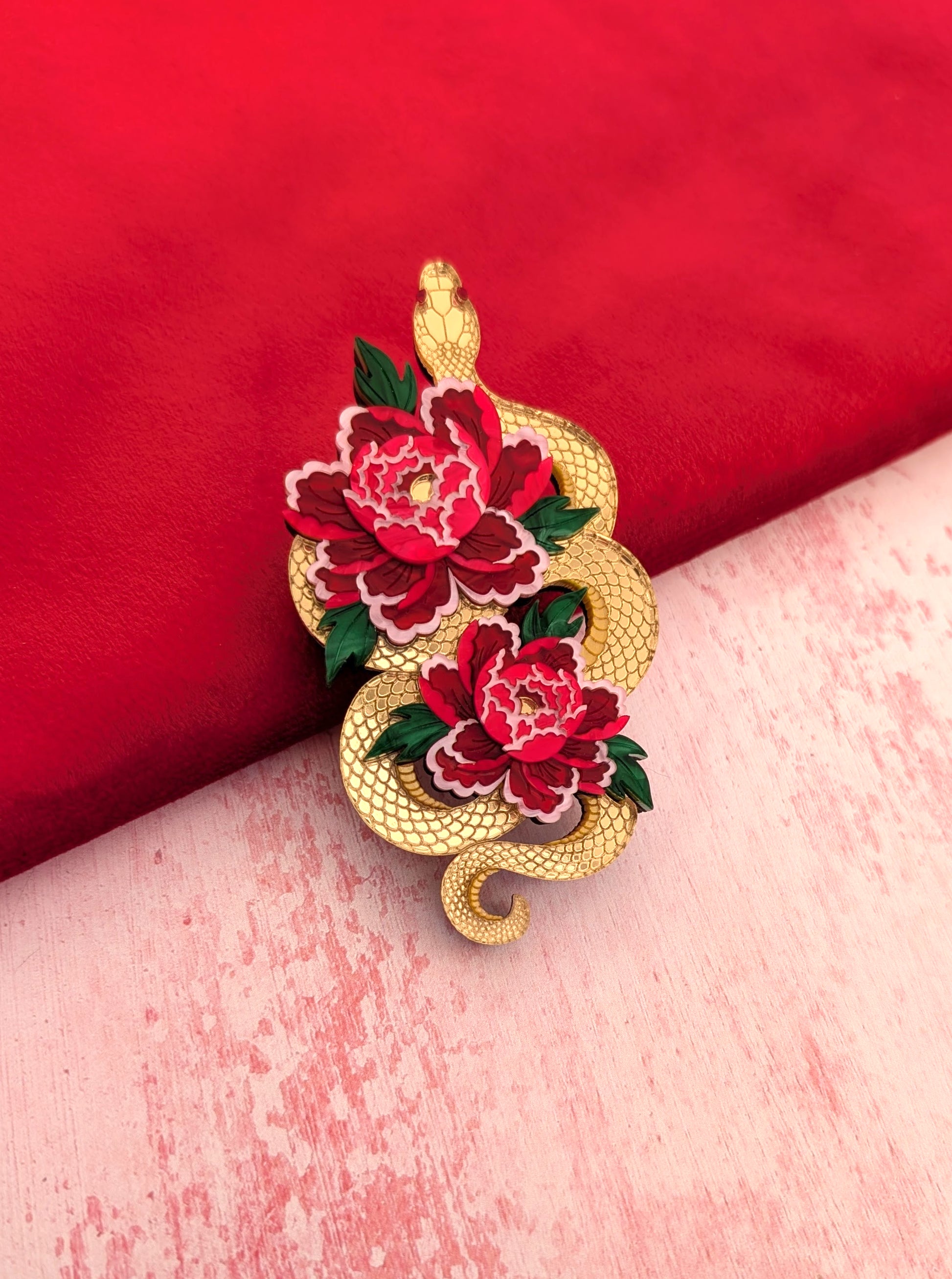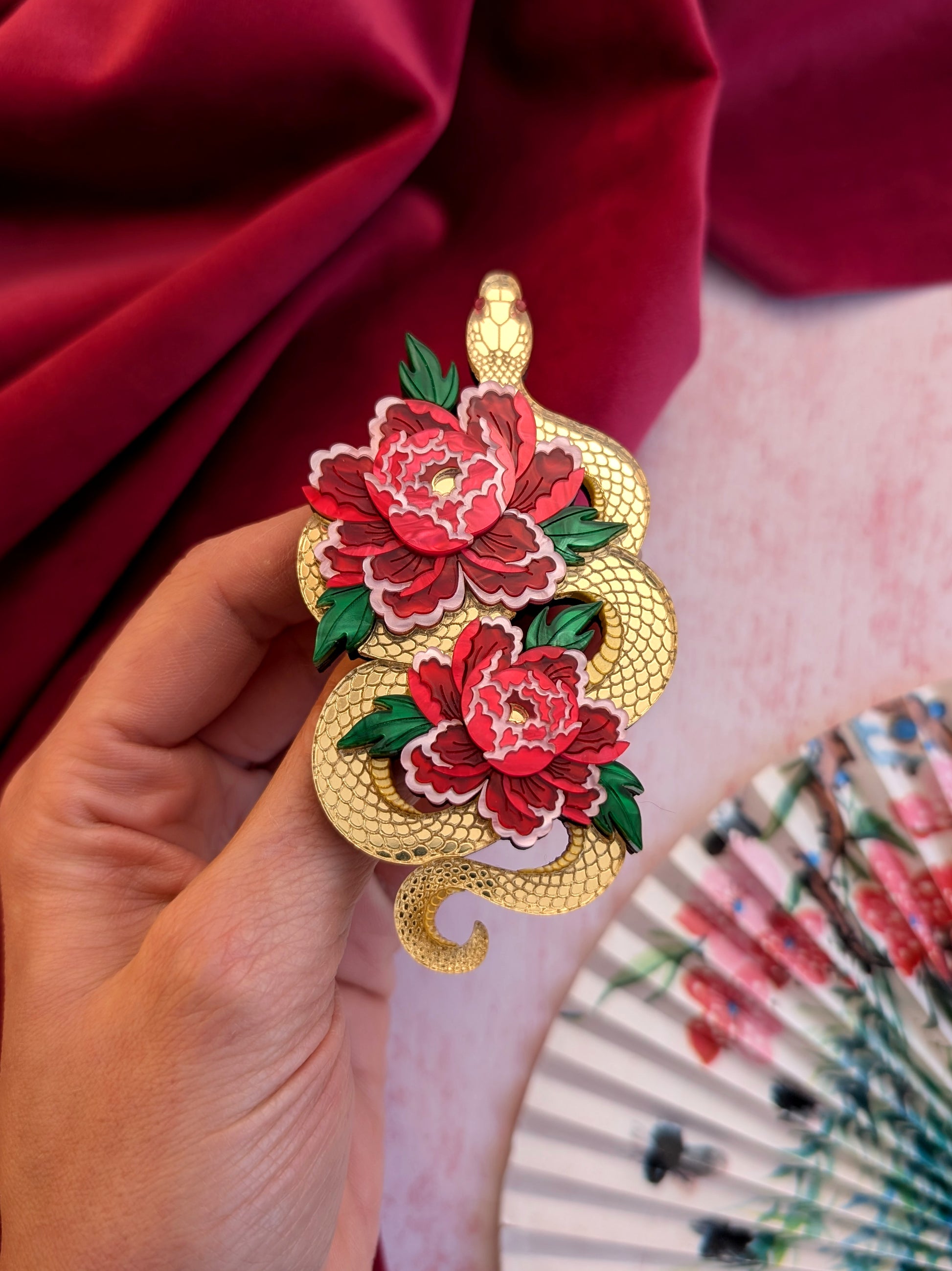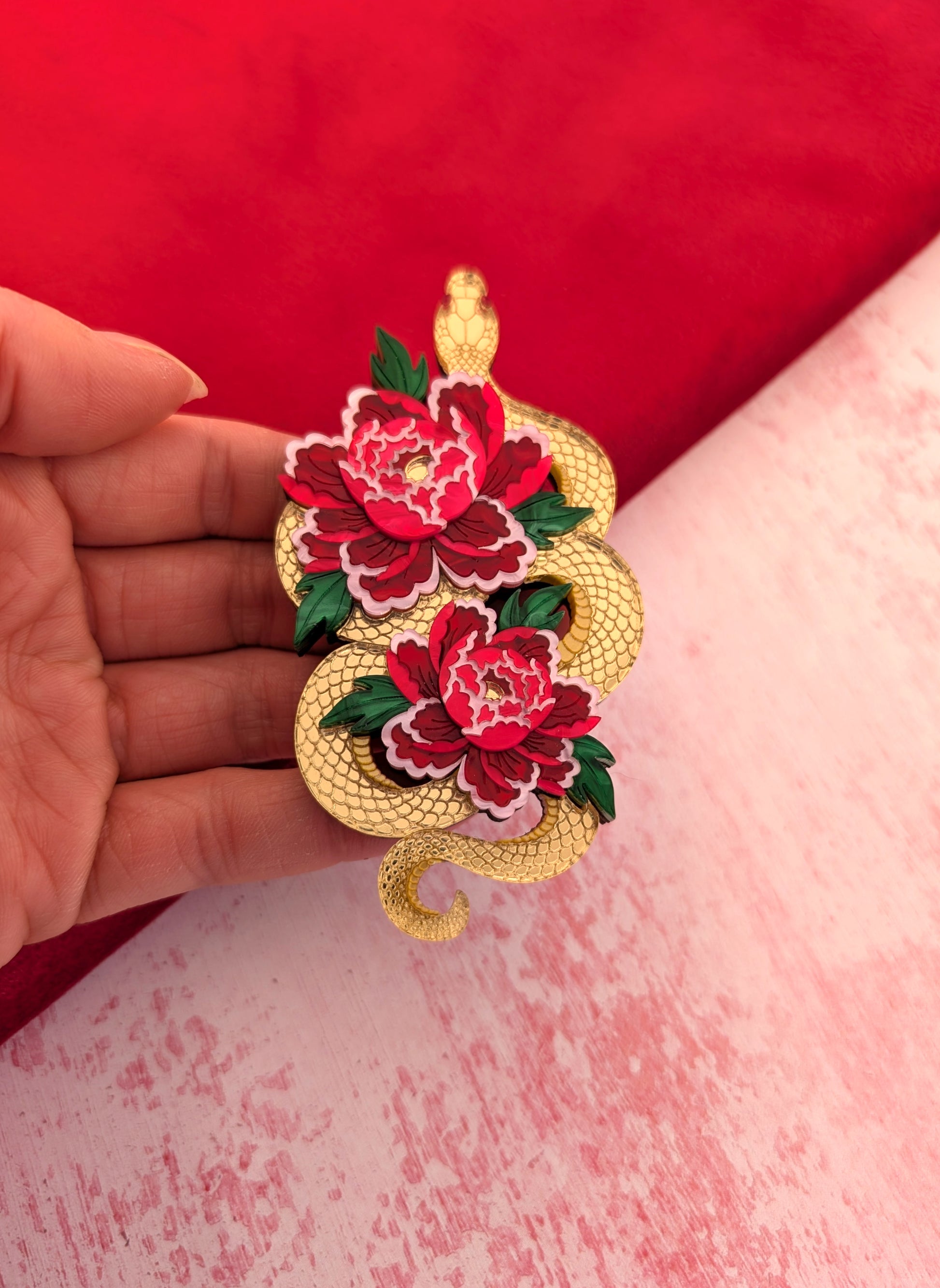 PRE ORDER Snake & Floral Statement Brooch GOLD
