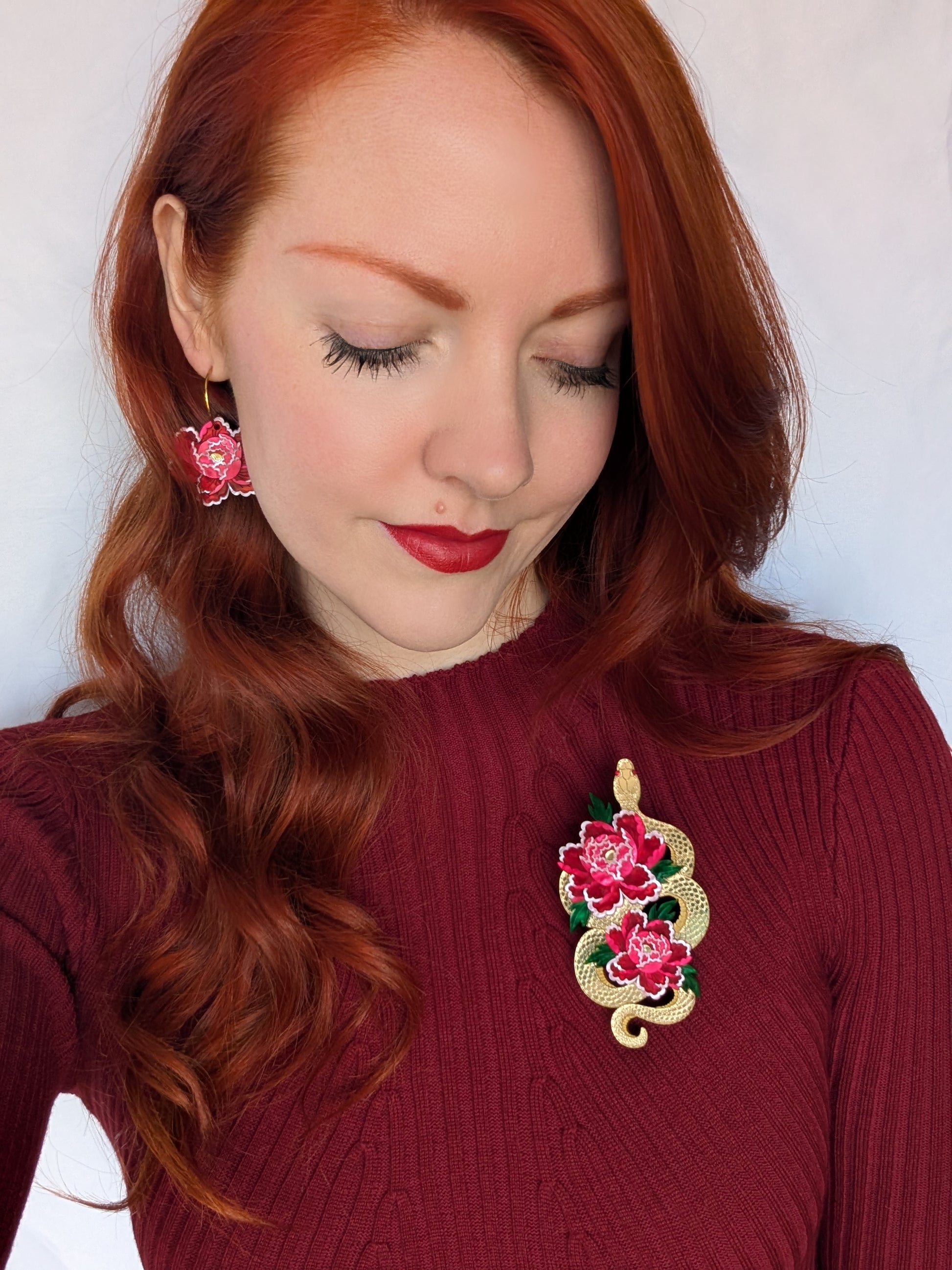 Following from the Lunar year of the dragon pieces and since I'm born under year of the snake, I decided to create some snake pieces as 2025 is year of the snake! Growing up, I never really liked my Chinese zodiac; snakes aren't the most well liked animals, but I have grown to like them and to admire the amazing qualities people born under the sign are said to have. The brief that I set myself was create pieces that obviously include snakes but also pieces that are beautiful and that appeal to people who may not usually desire to wear snake jewellery. I also wanted to give the pieces a Chinese inspired style to them to so I came up with snakes with a peony inspired flower design.