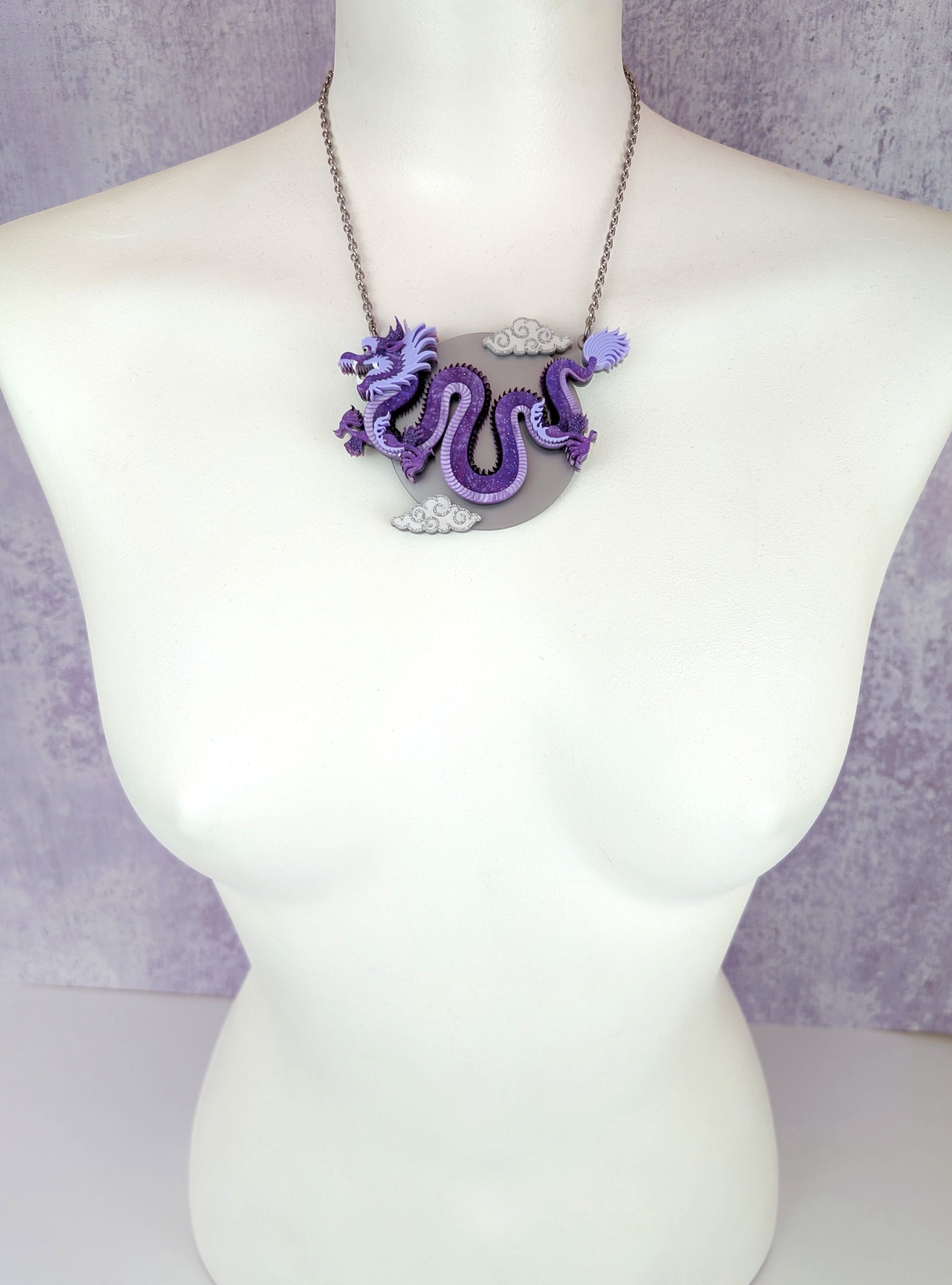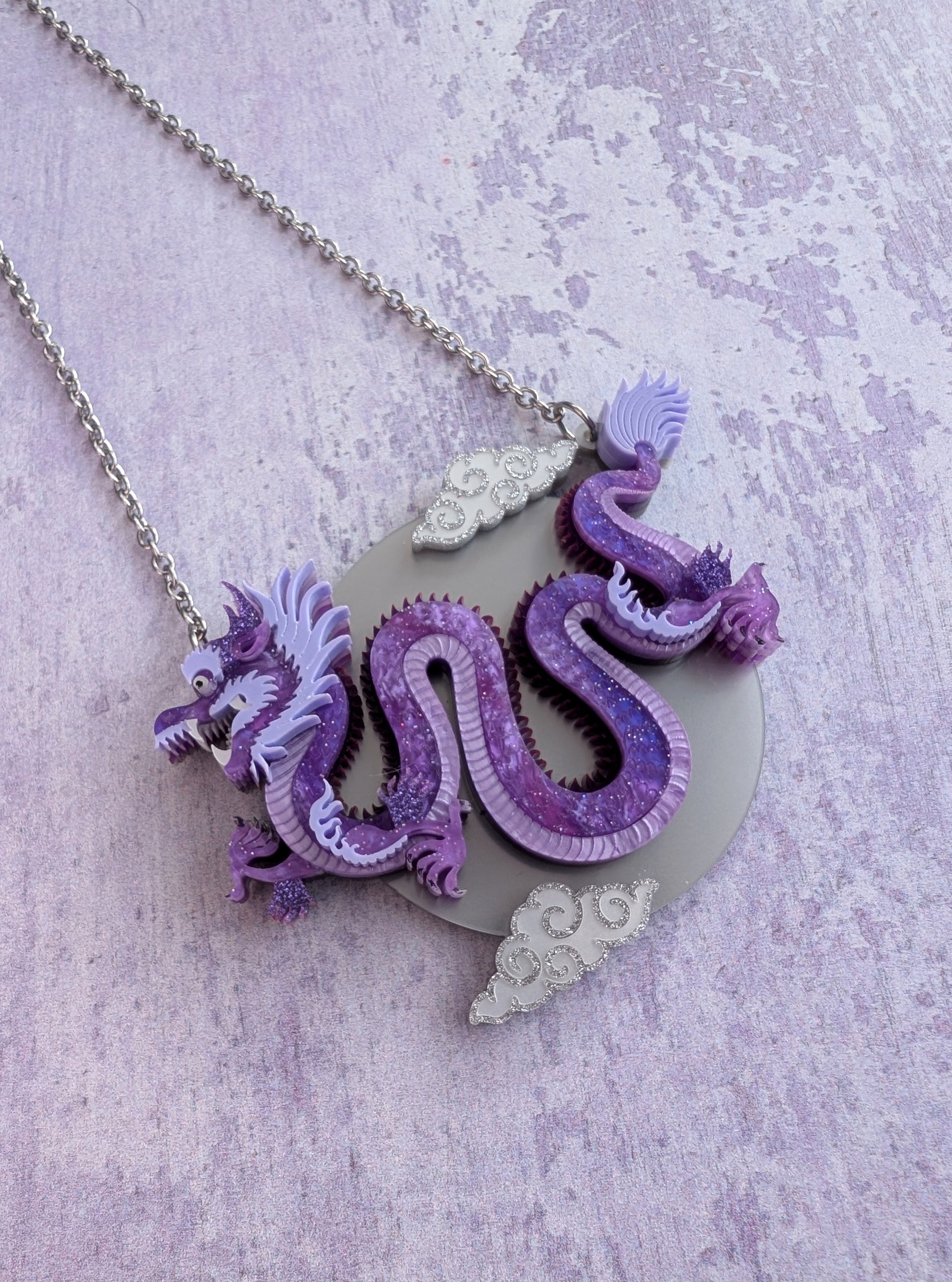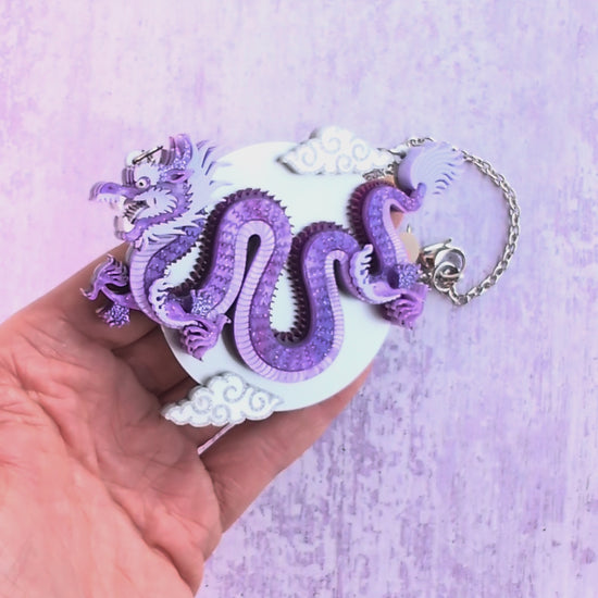PRE ORDER Chinese Dragon Brooch or Necklace PURPLE
