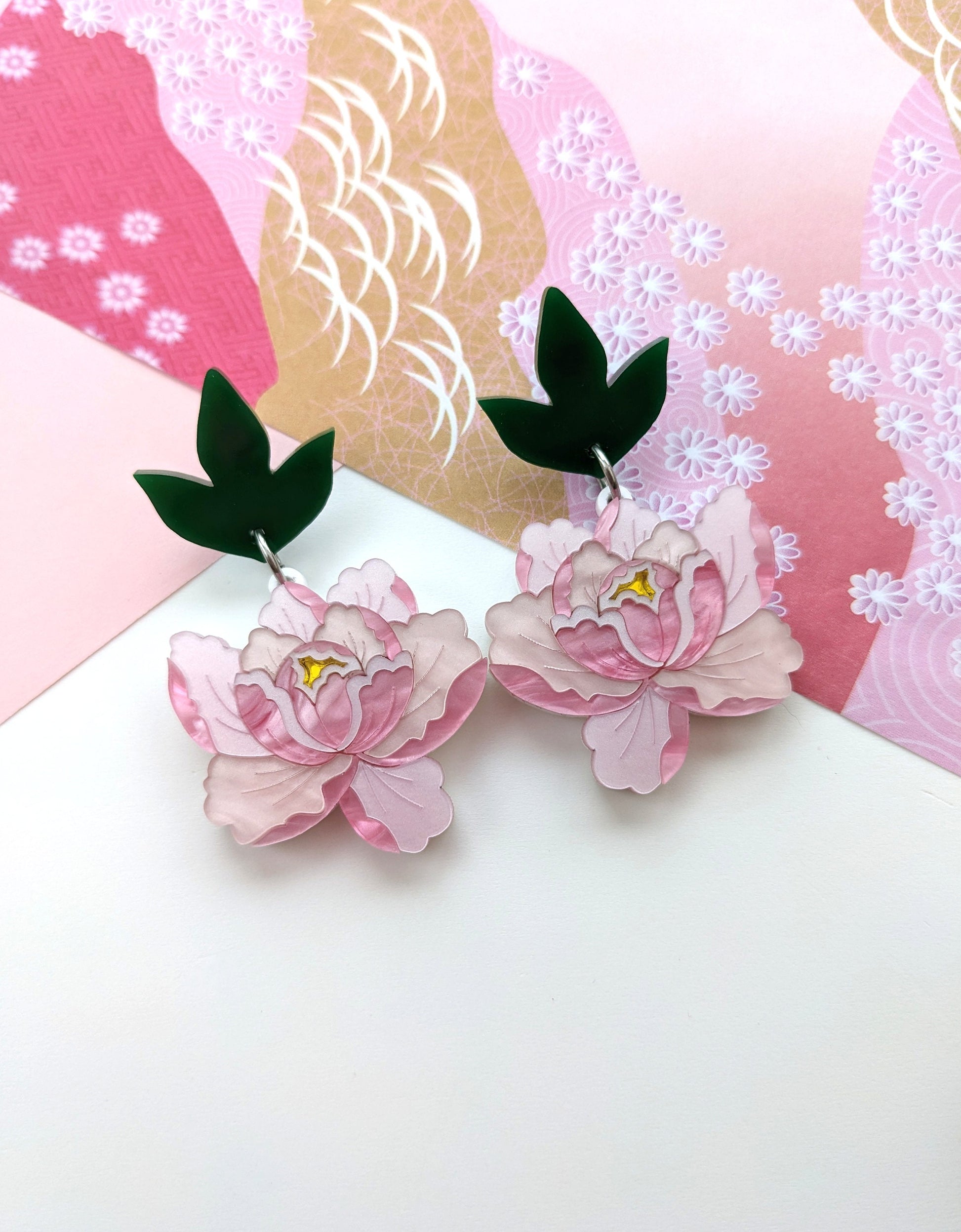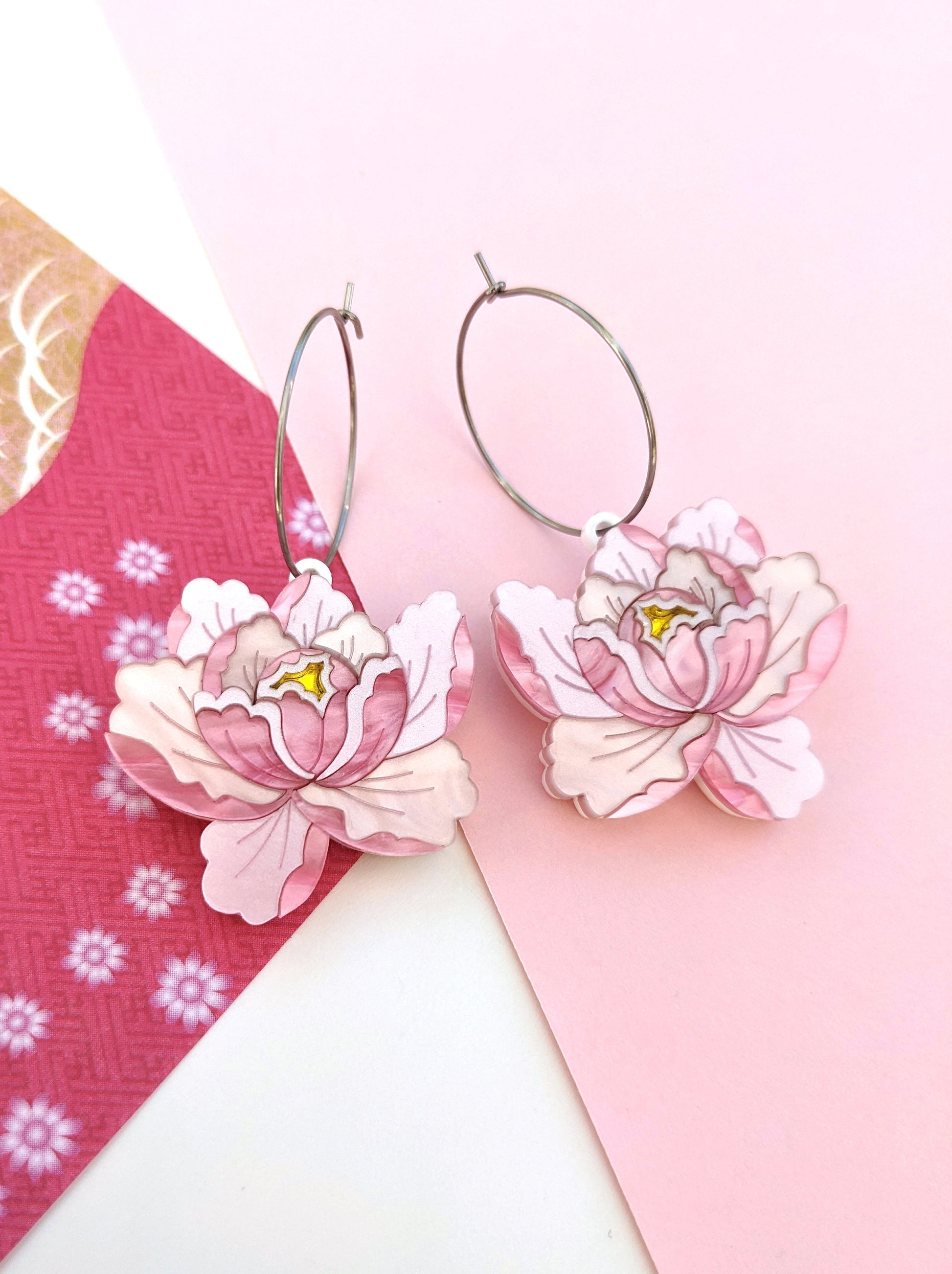 PRE ORDER Peony Dangle or Hoop Earrings - Delicate Pink