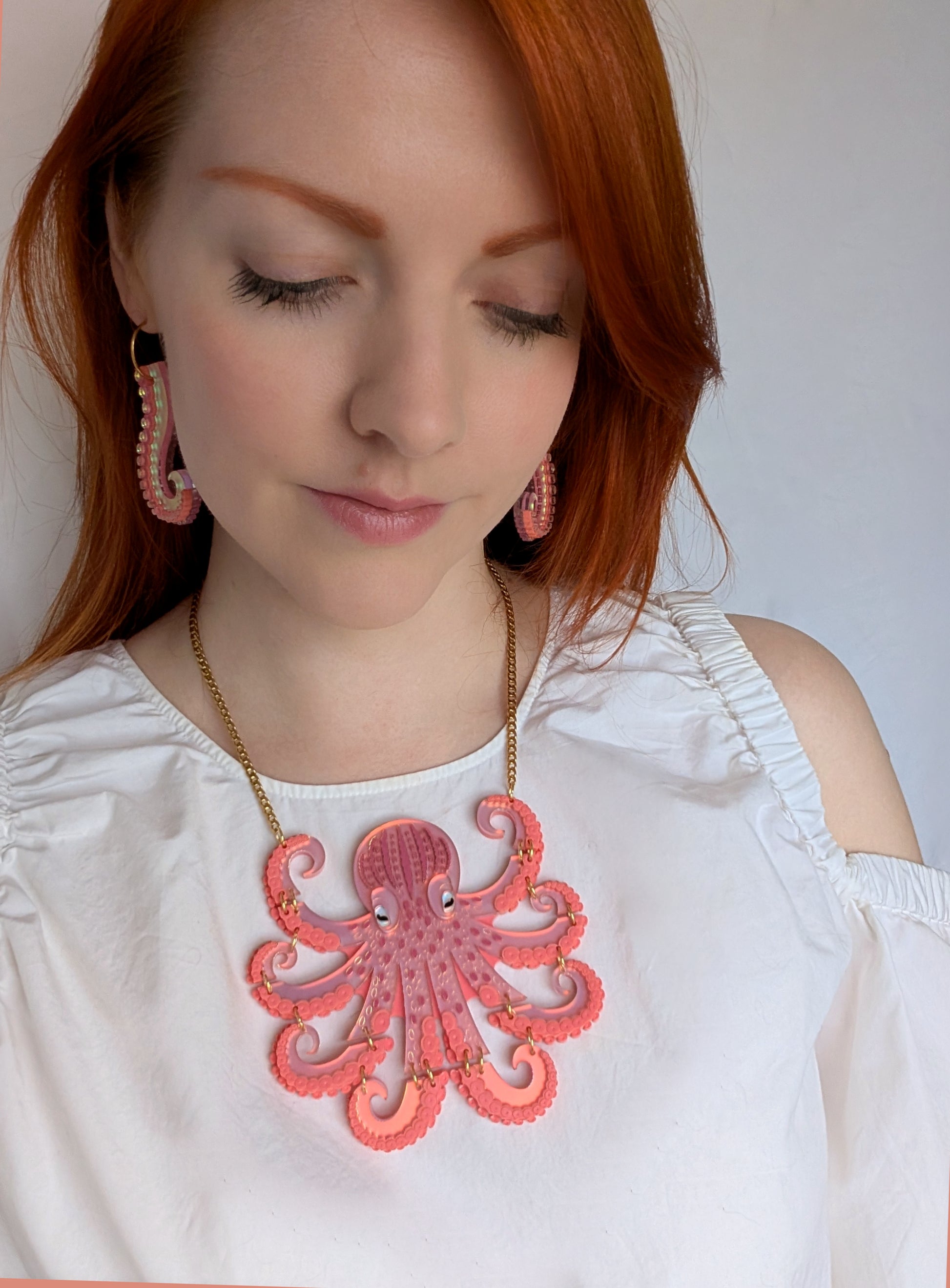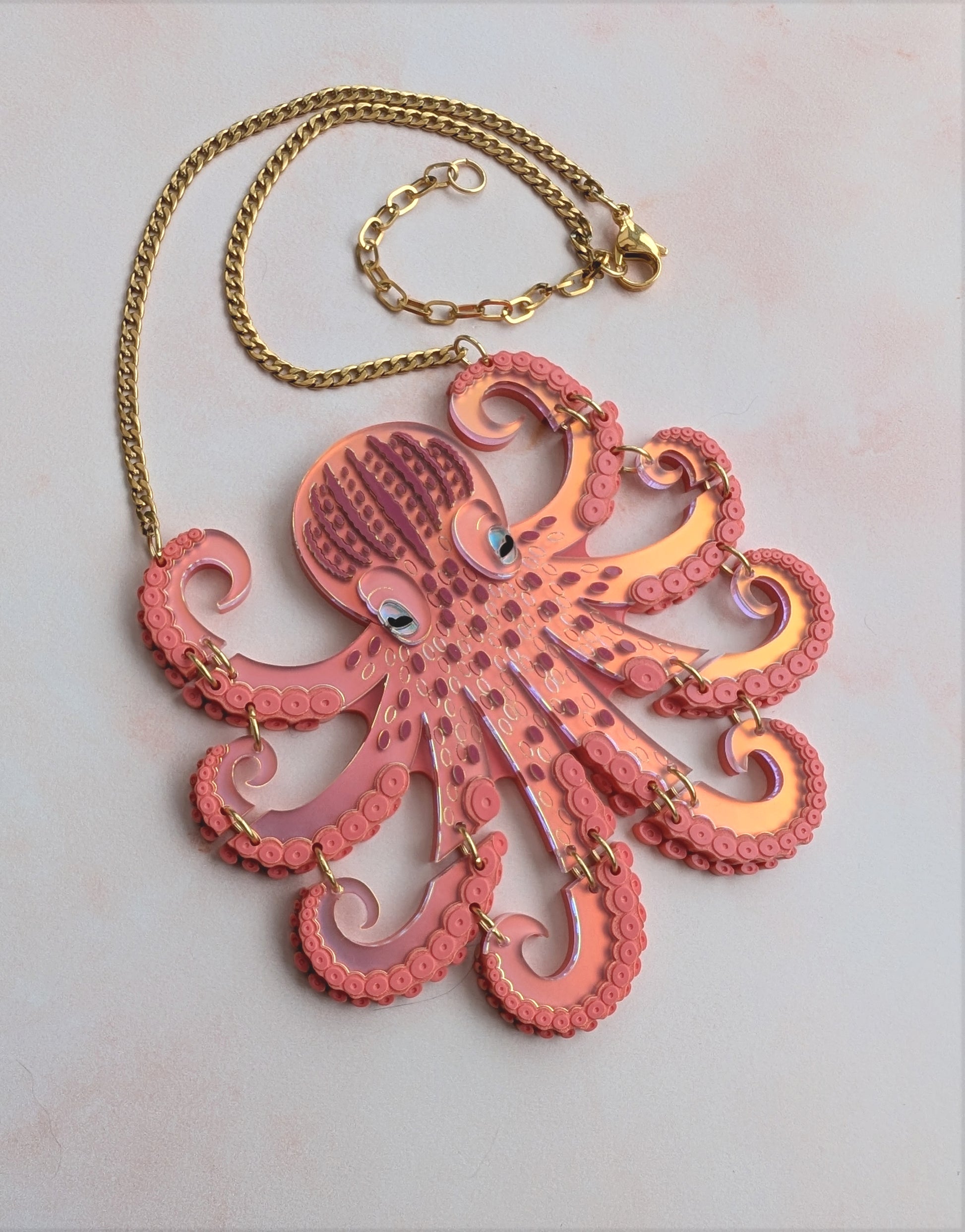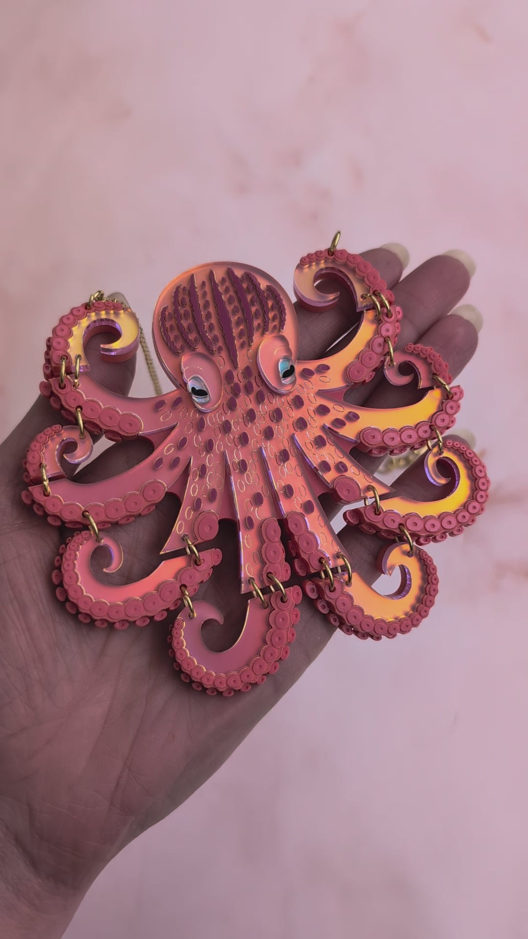PRE ORDER Medium Octopus Necklace (Articulated) Iridescent CORAL