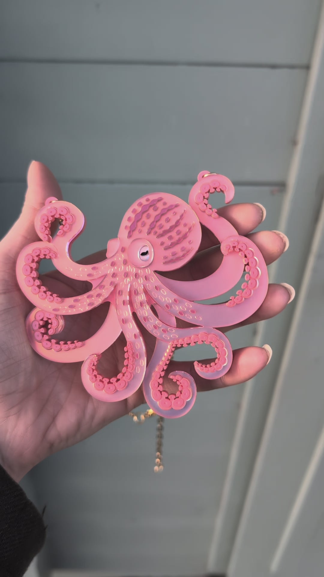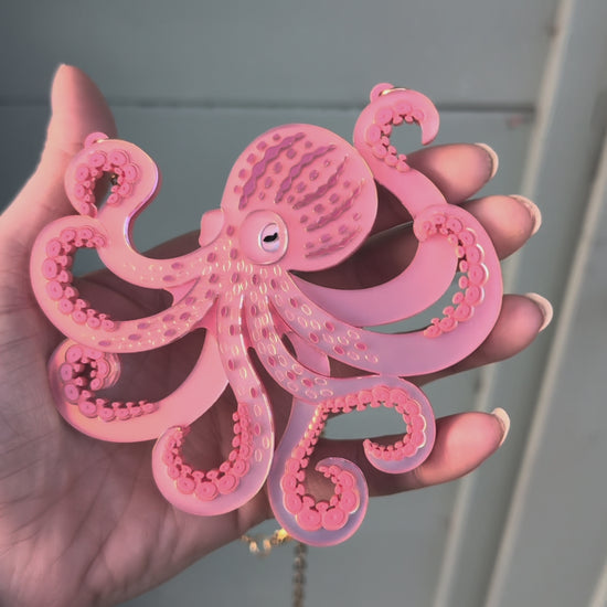 PRE ORDER Acrylic Octopus (side on) Necklace, 2 Sizes Iridescent CORAL