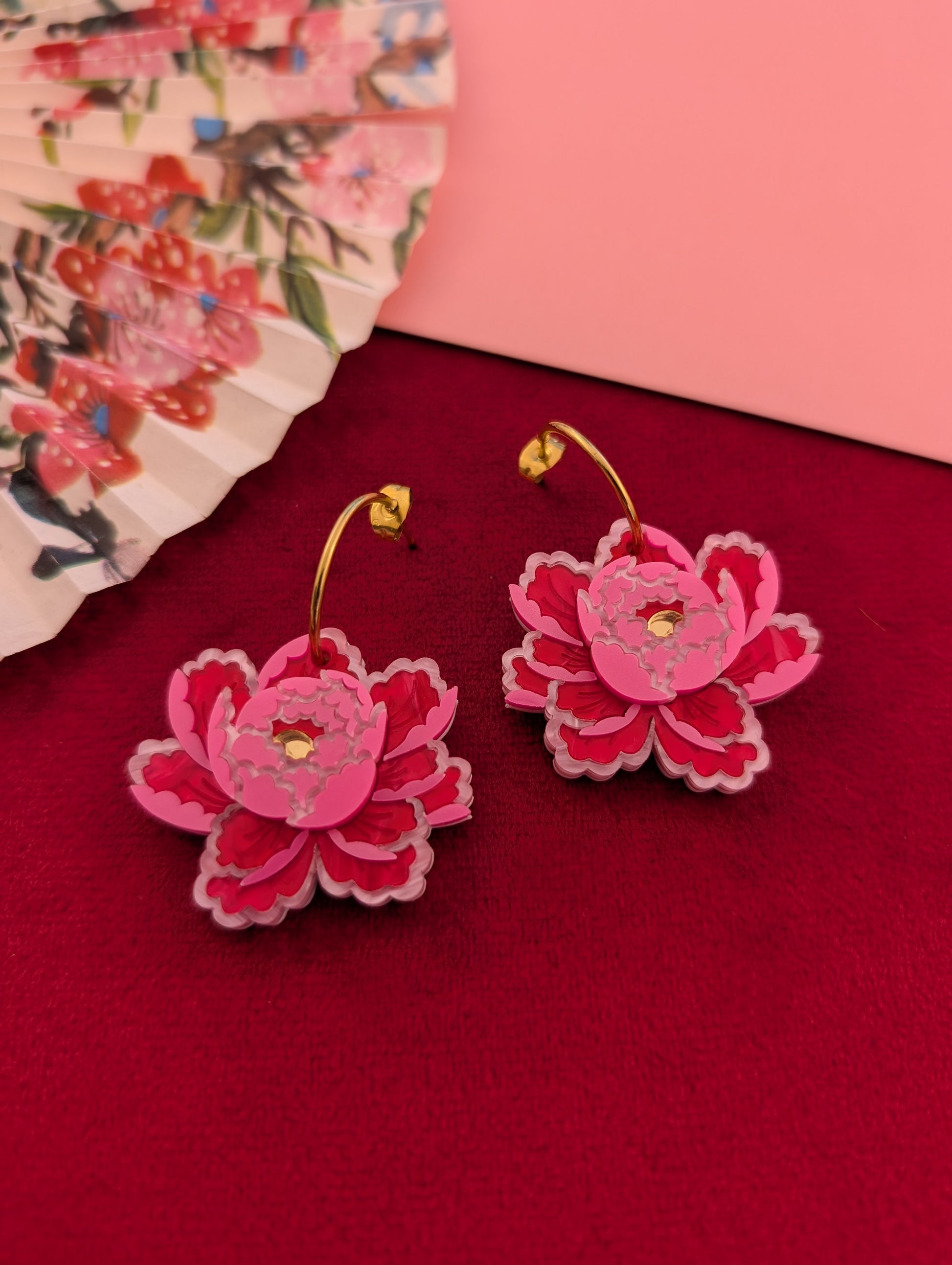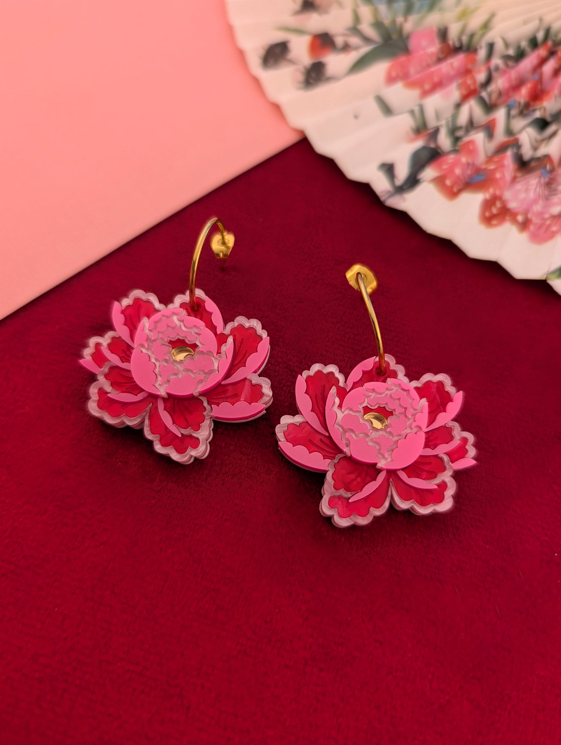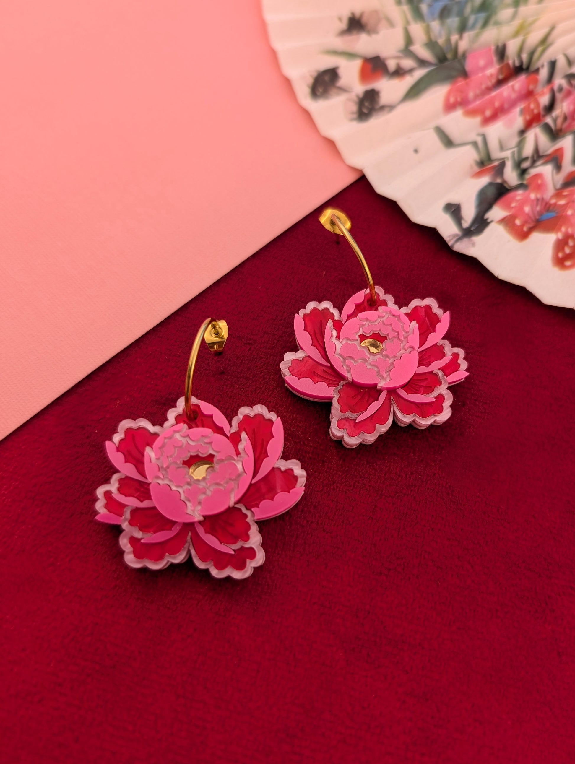 PRE ORDER Peony Inspired Single Flower Earrings BRIGHT PINK