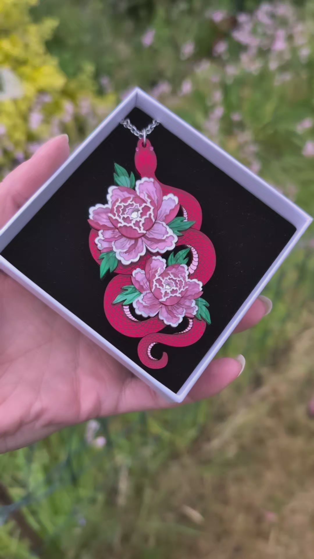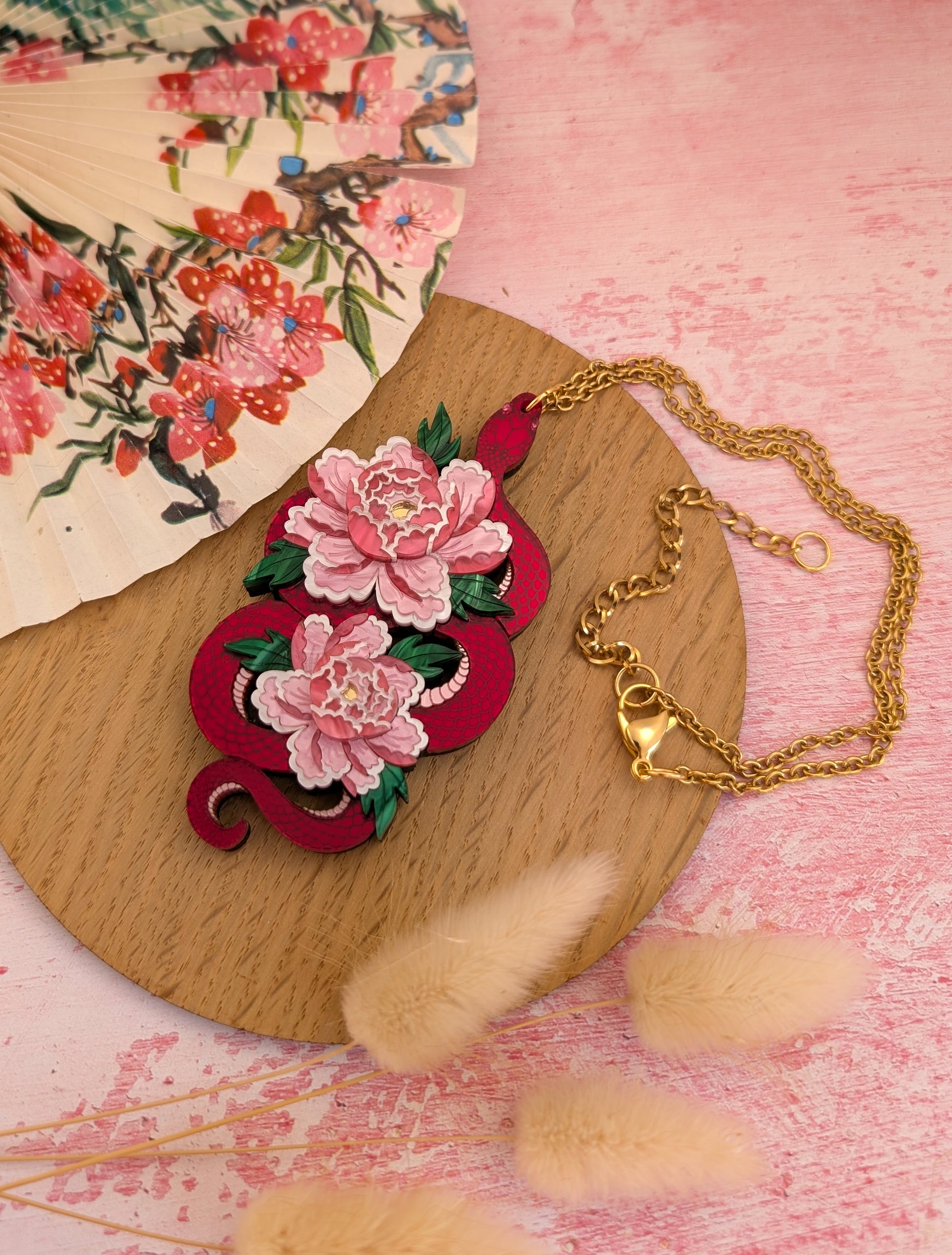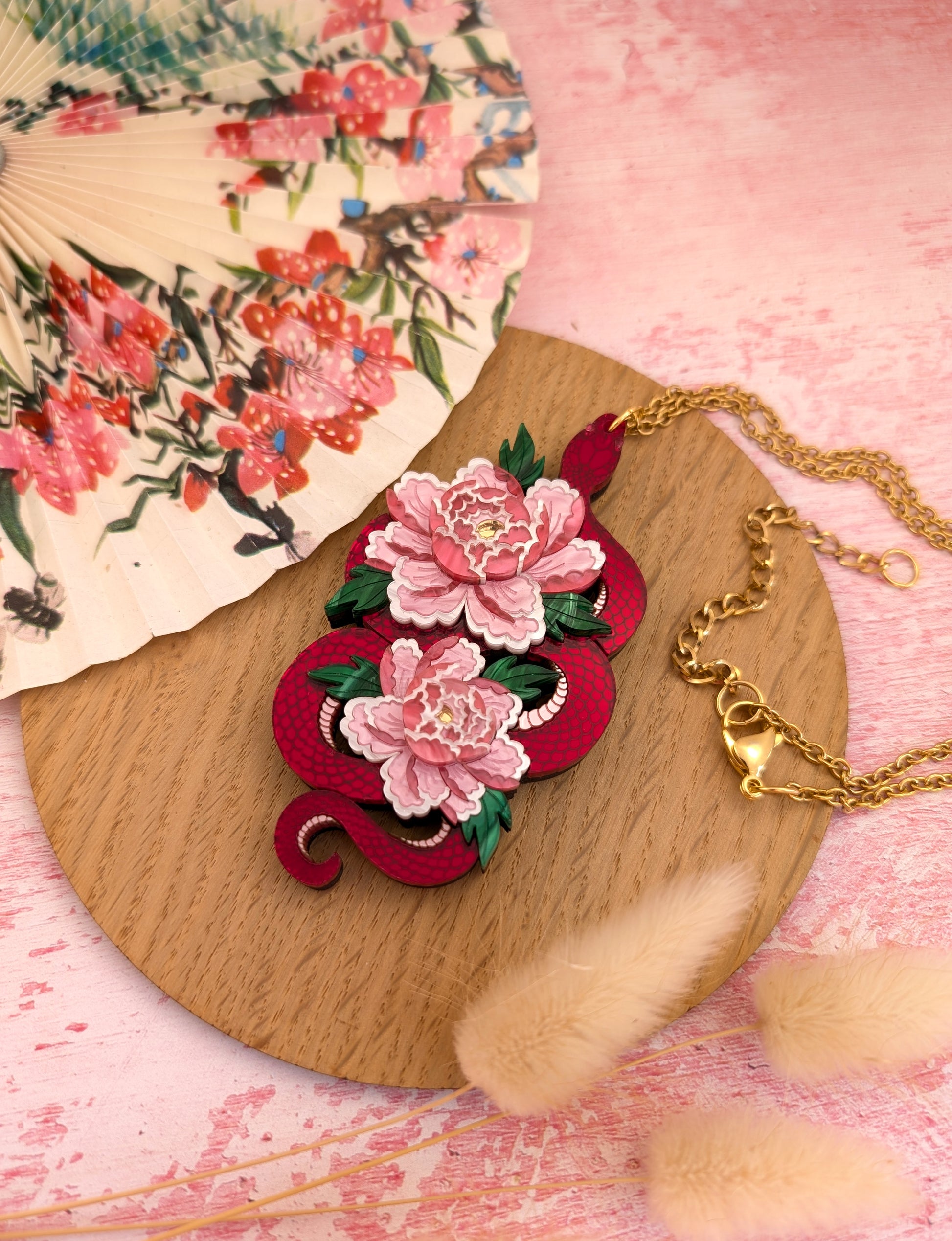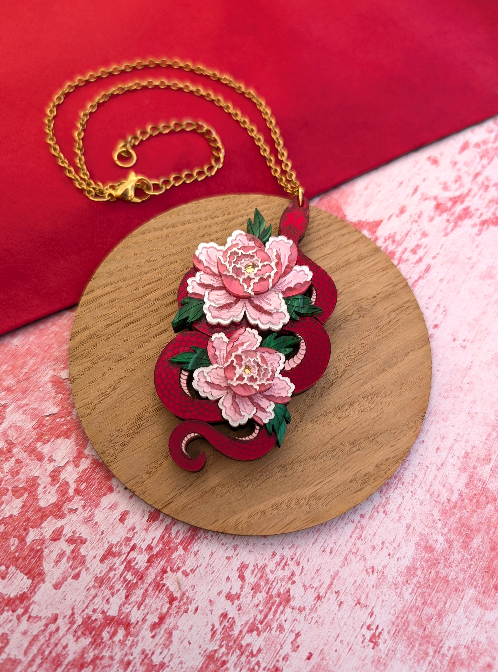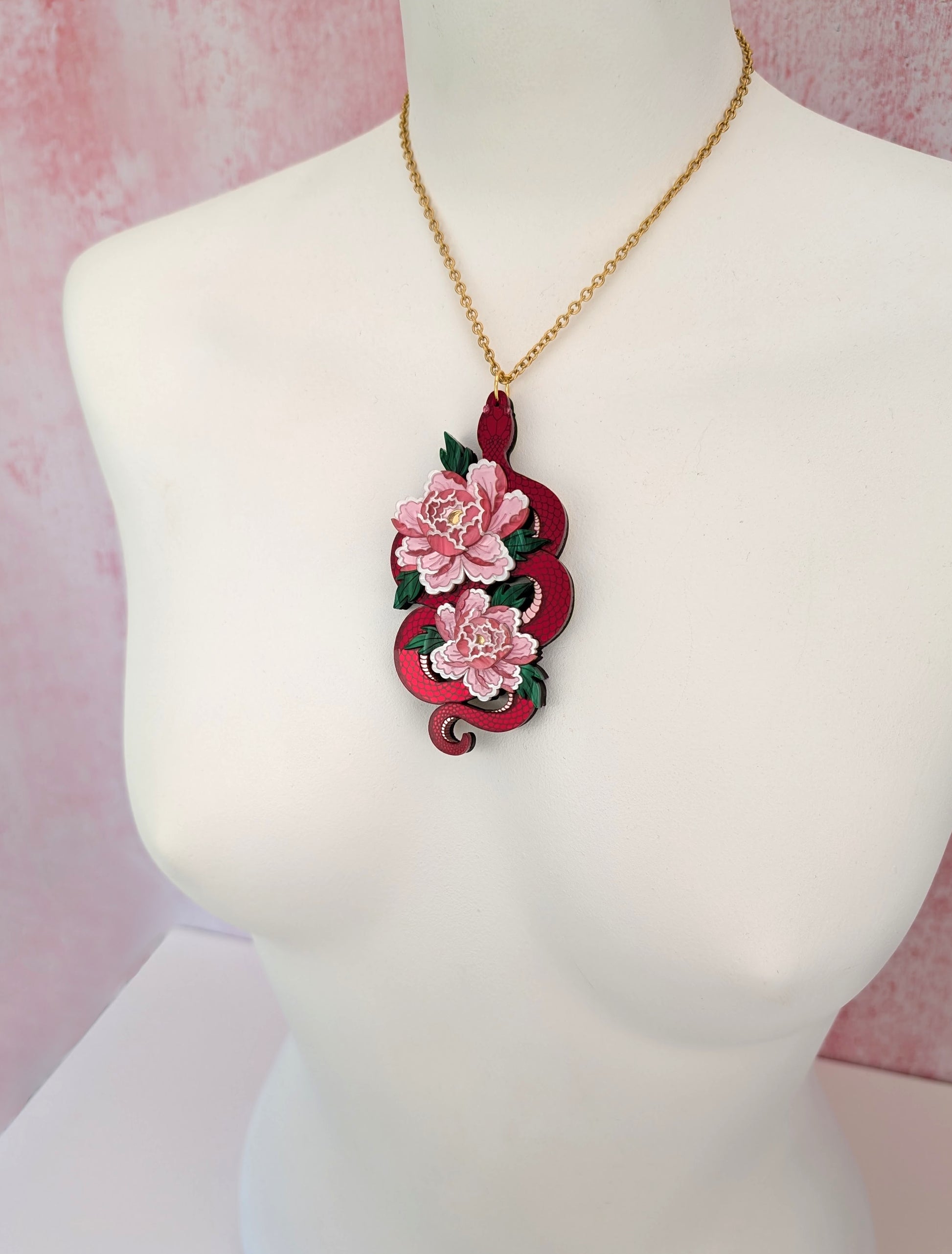 PRE ORDER Snake & Floral Statement Pendant or Necklace (on side) RED