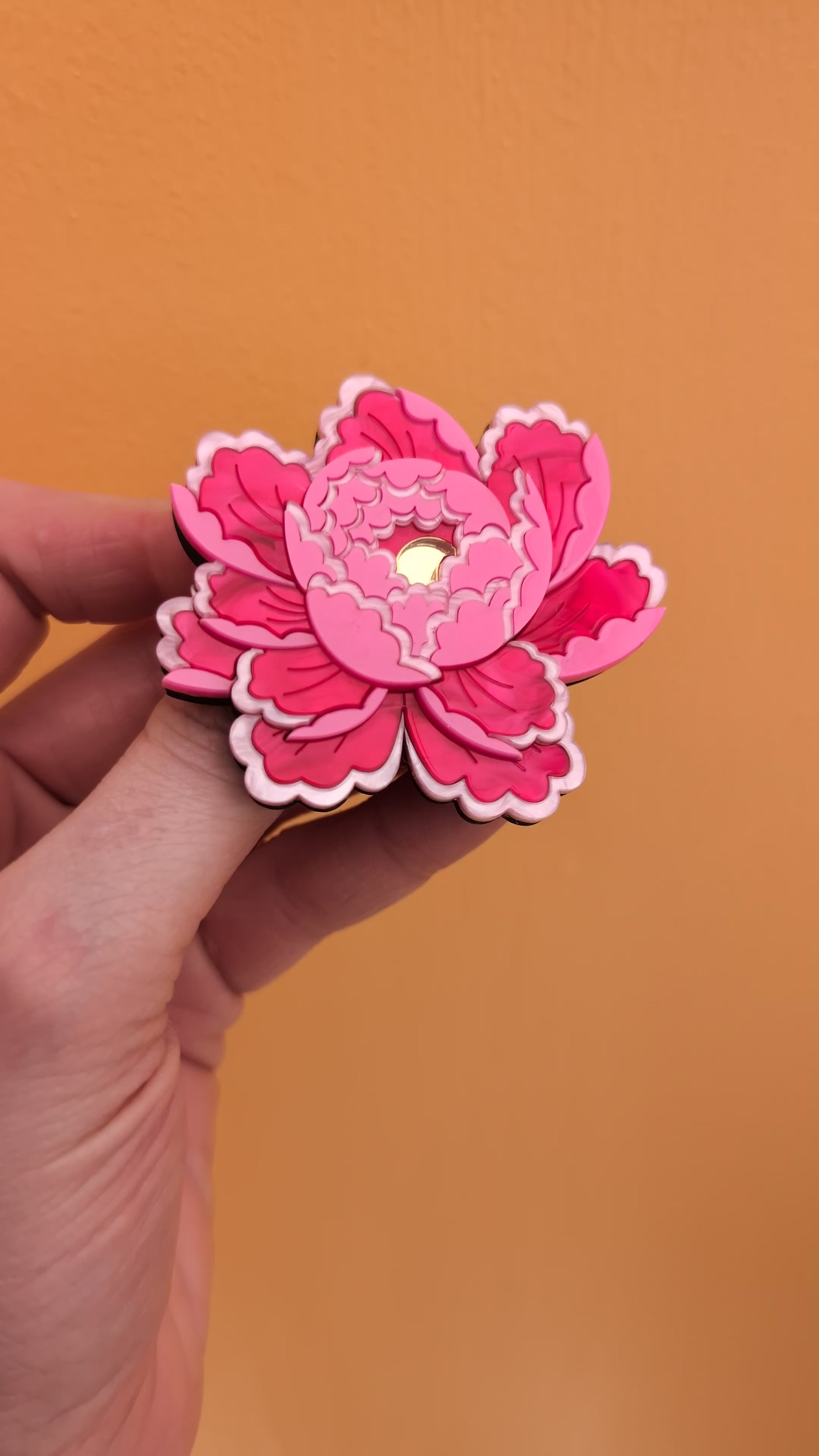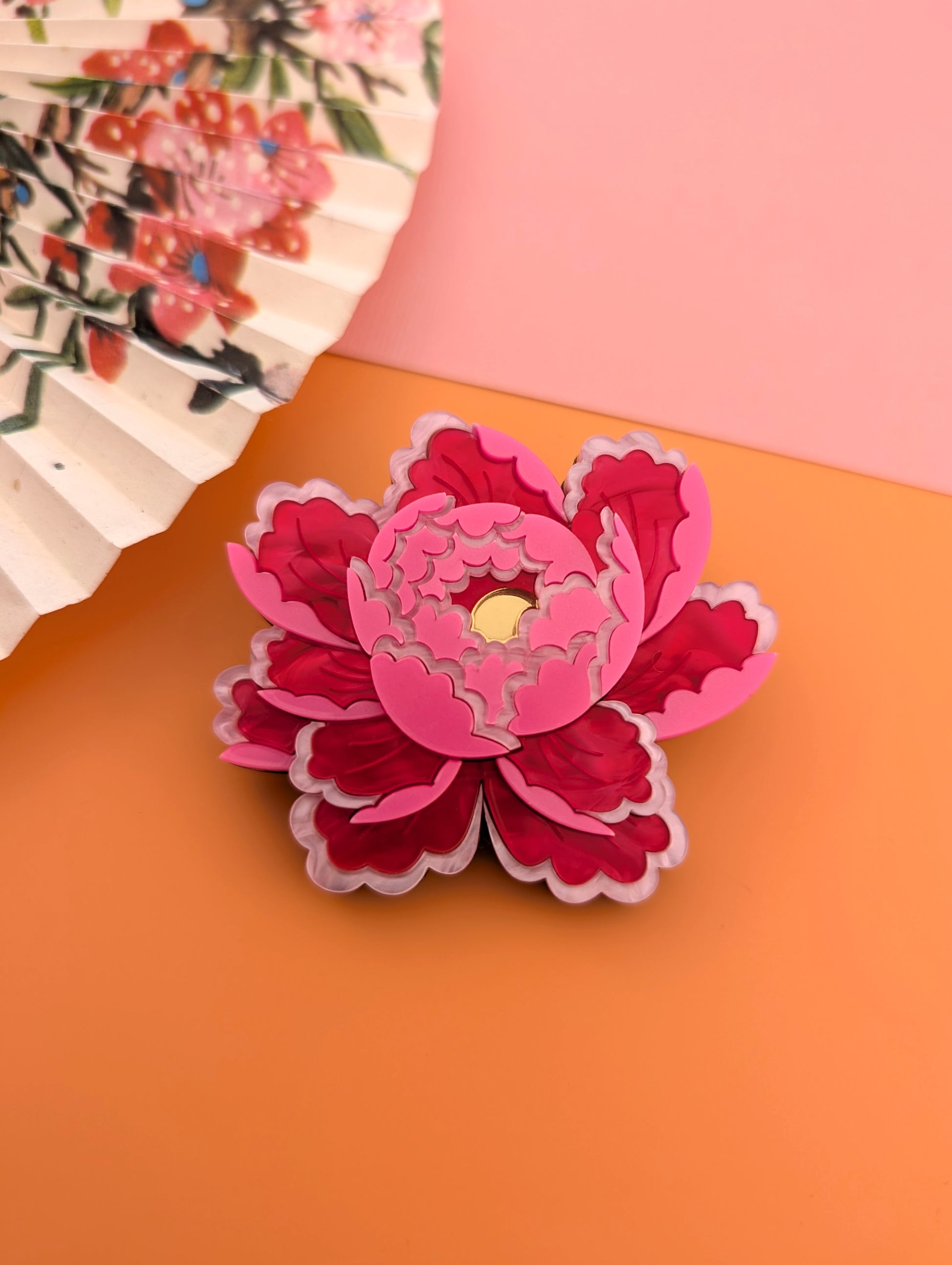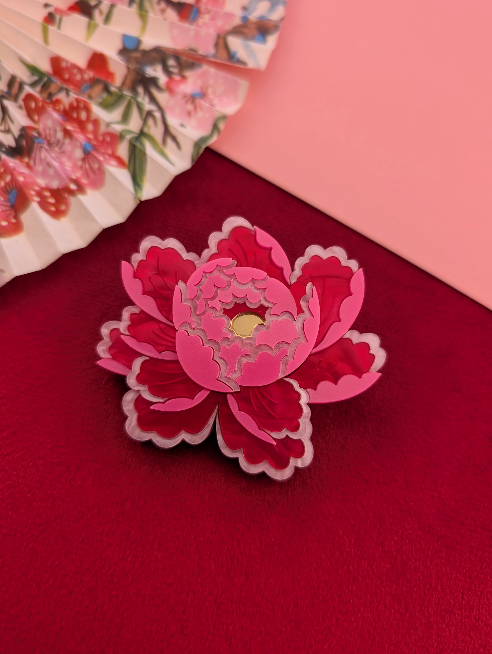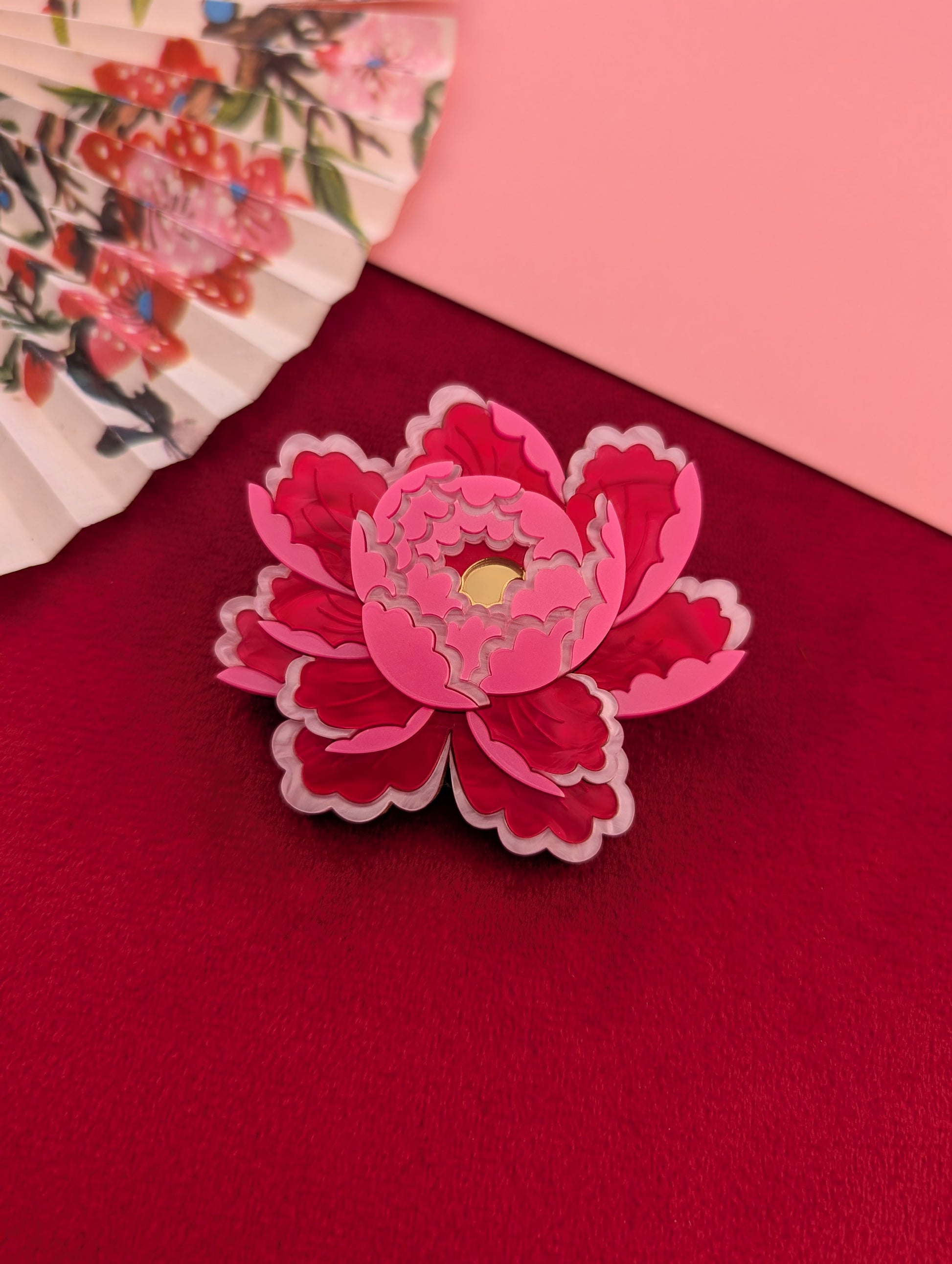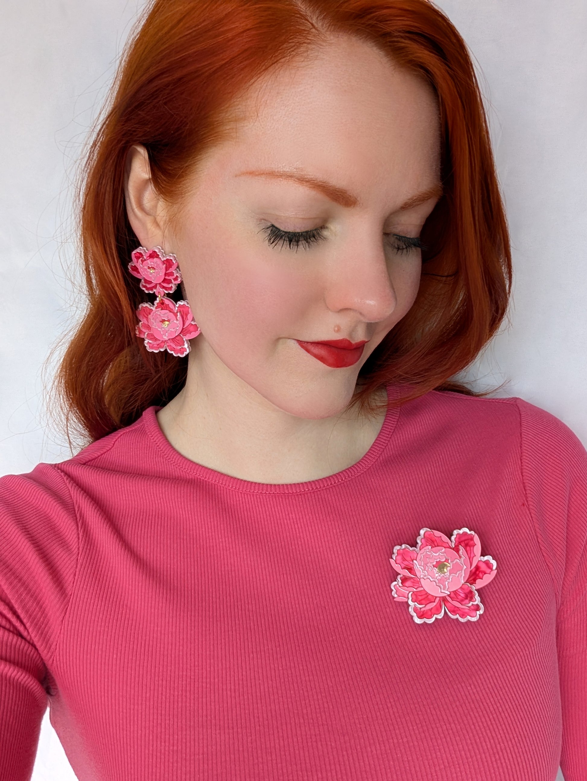 PRE ORDER Peony Inspired Flower Brooch or Pendant BRIGHT PINK