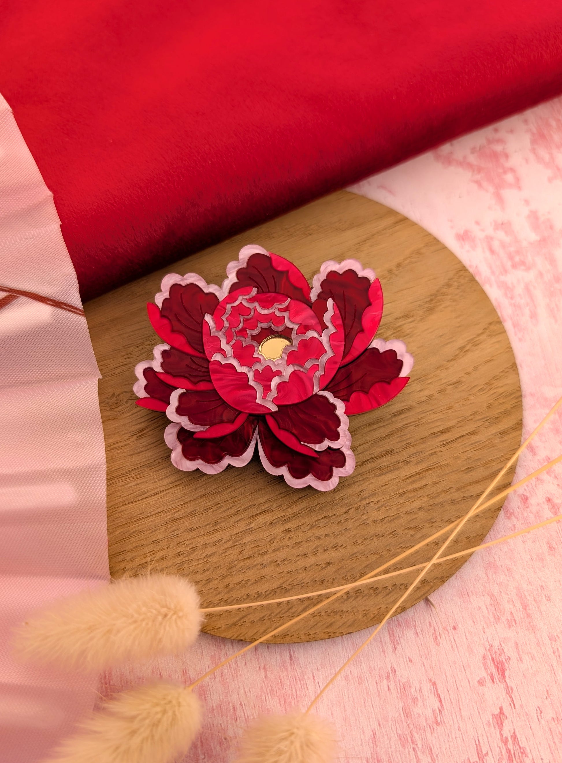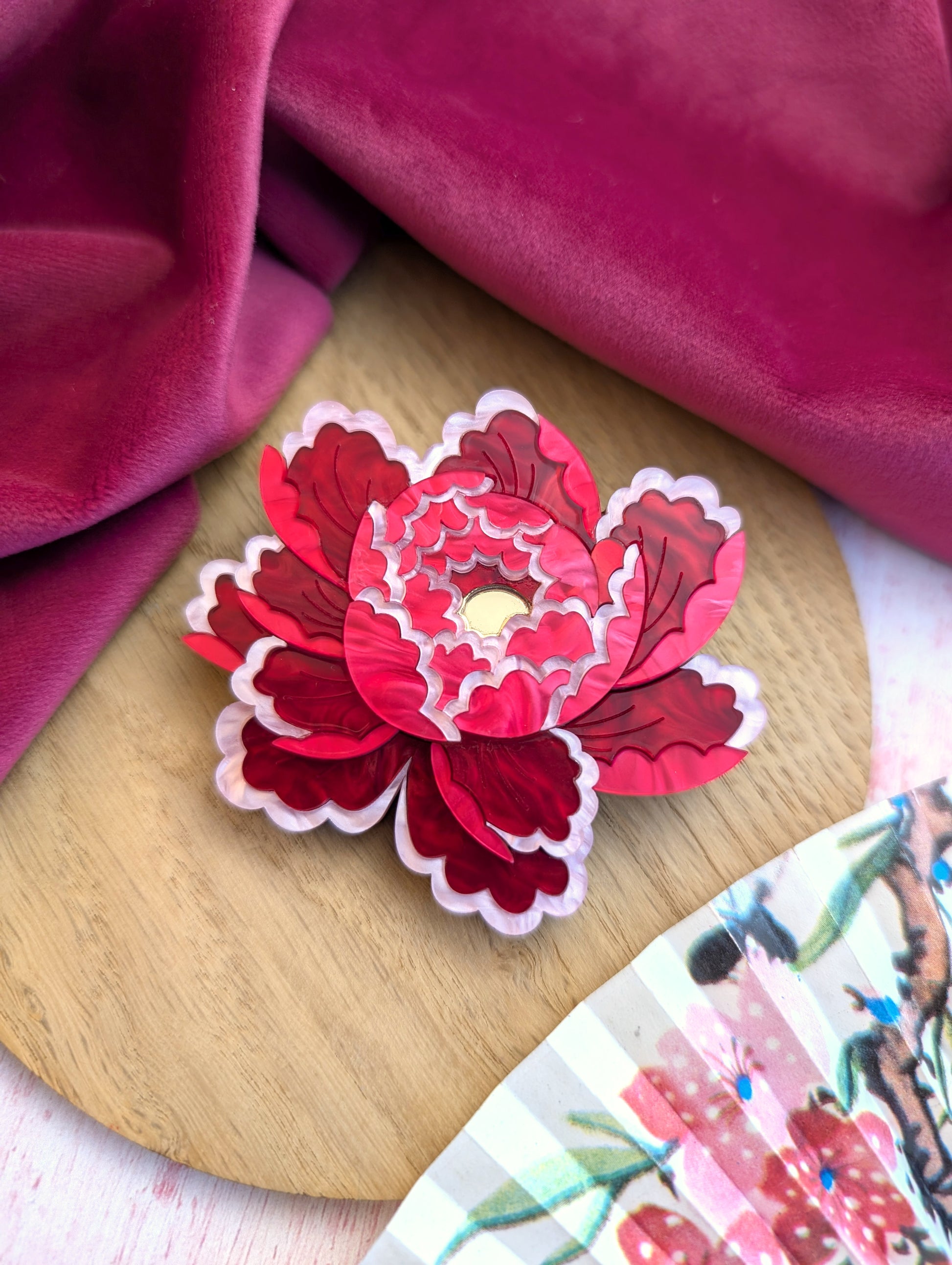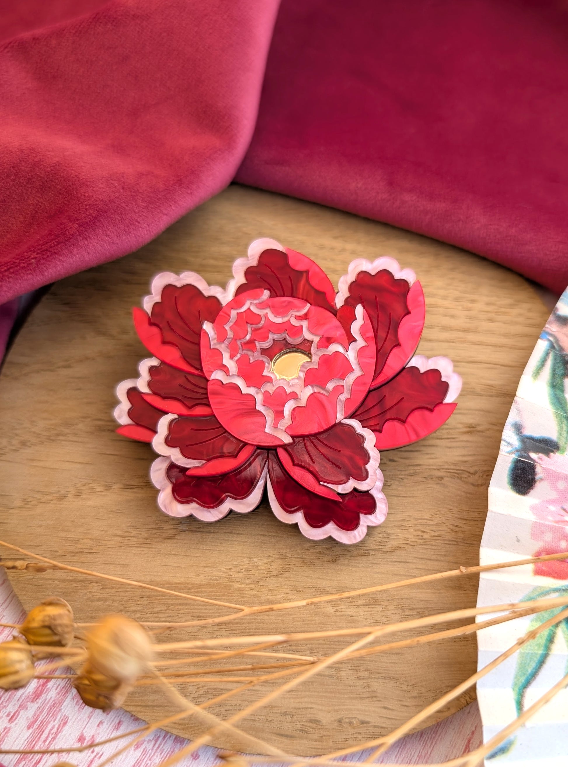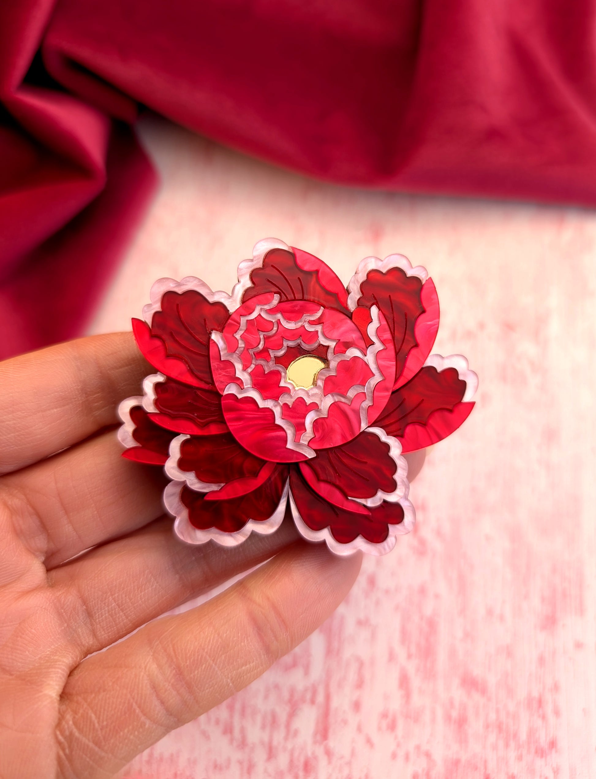 PRE ORDER Peony Inspired Flower Brooch or Pendant RED/PINK (one fully made brooch available)