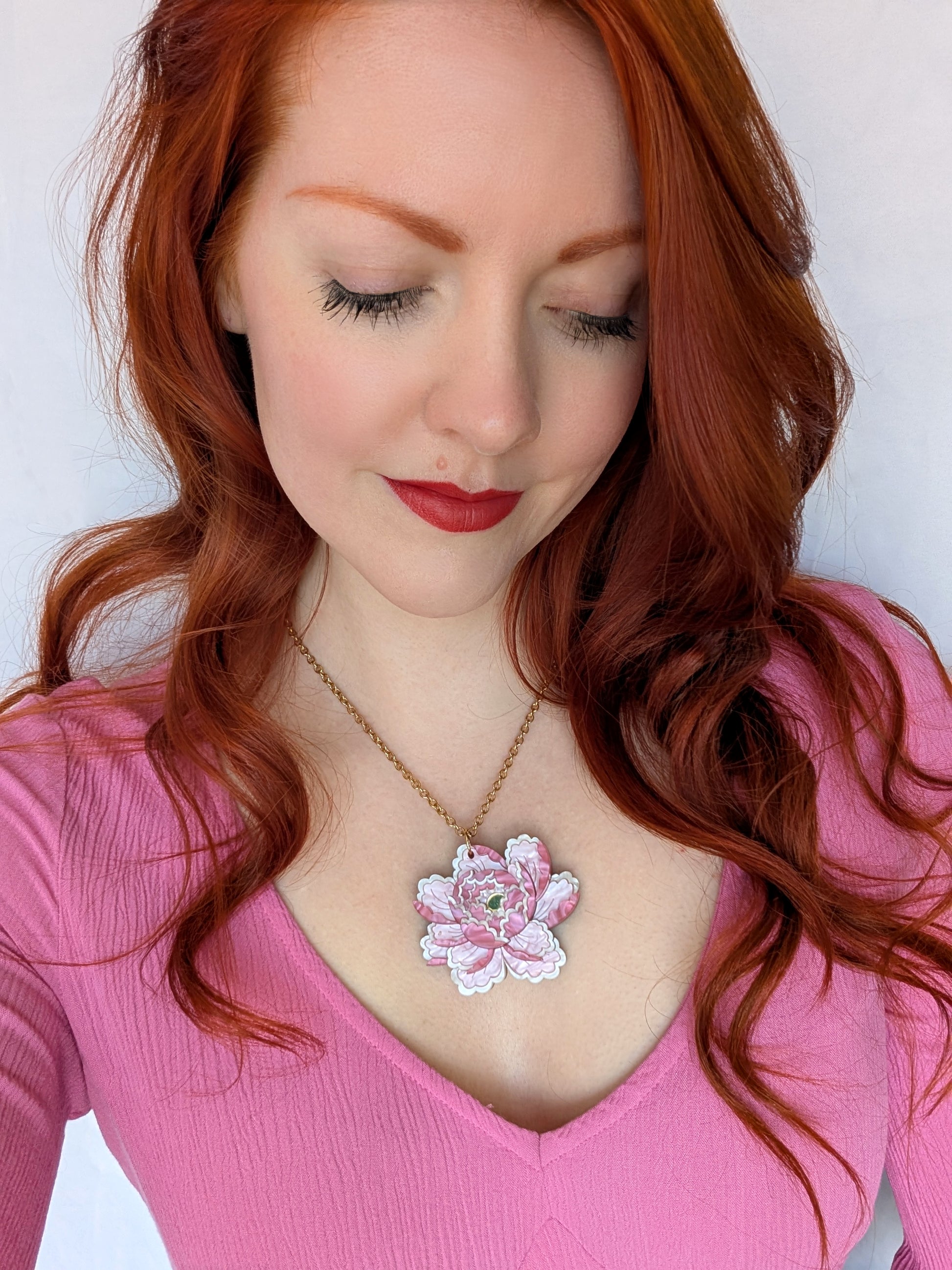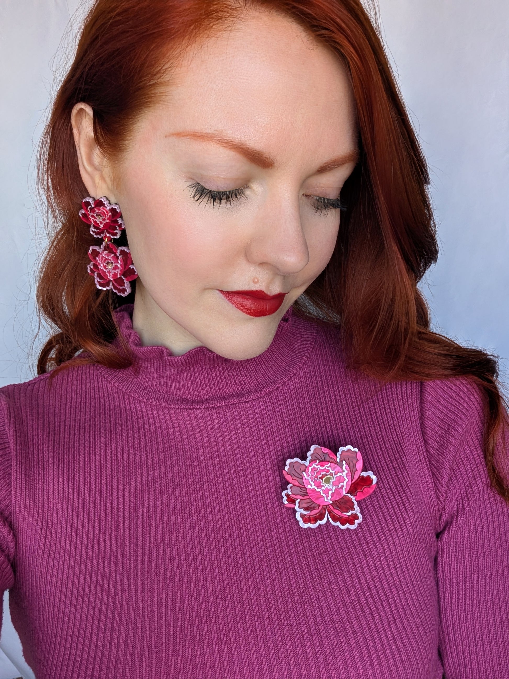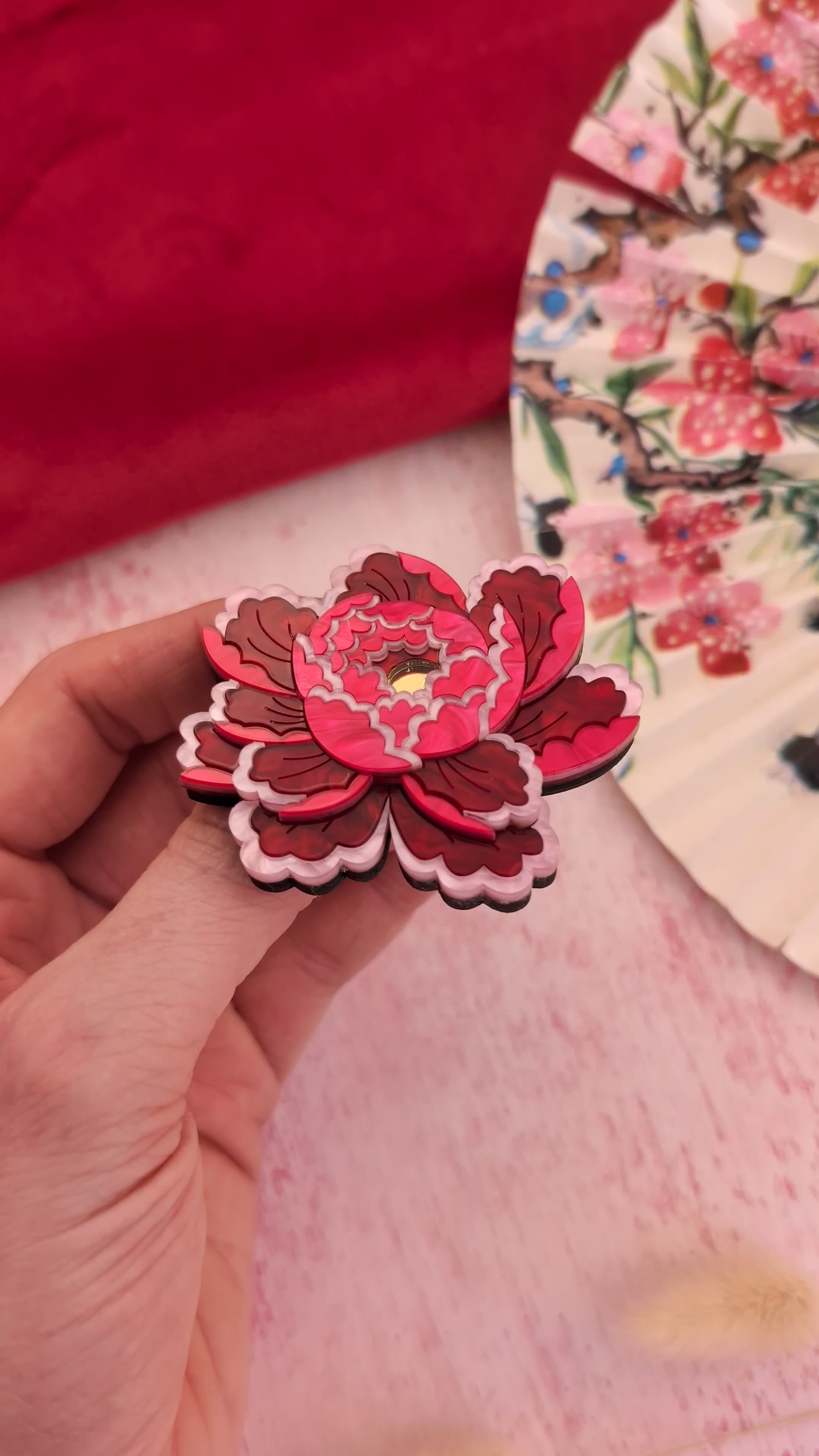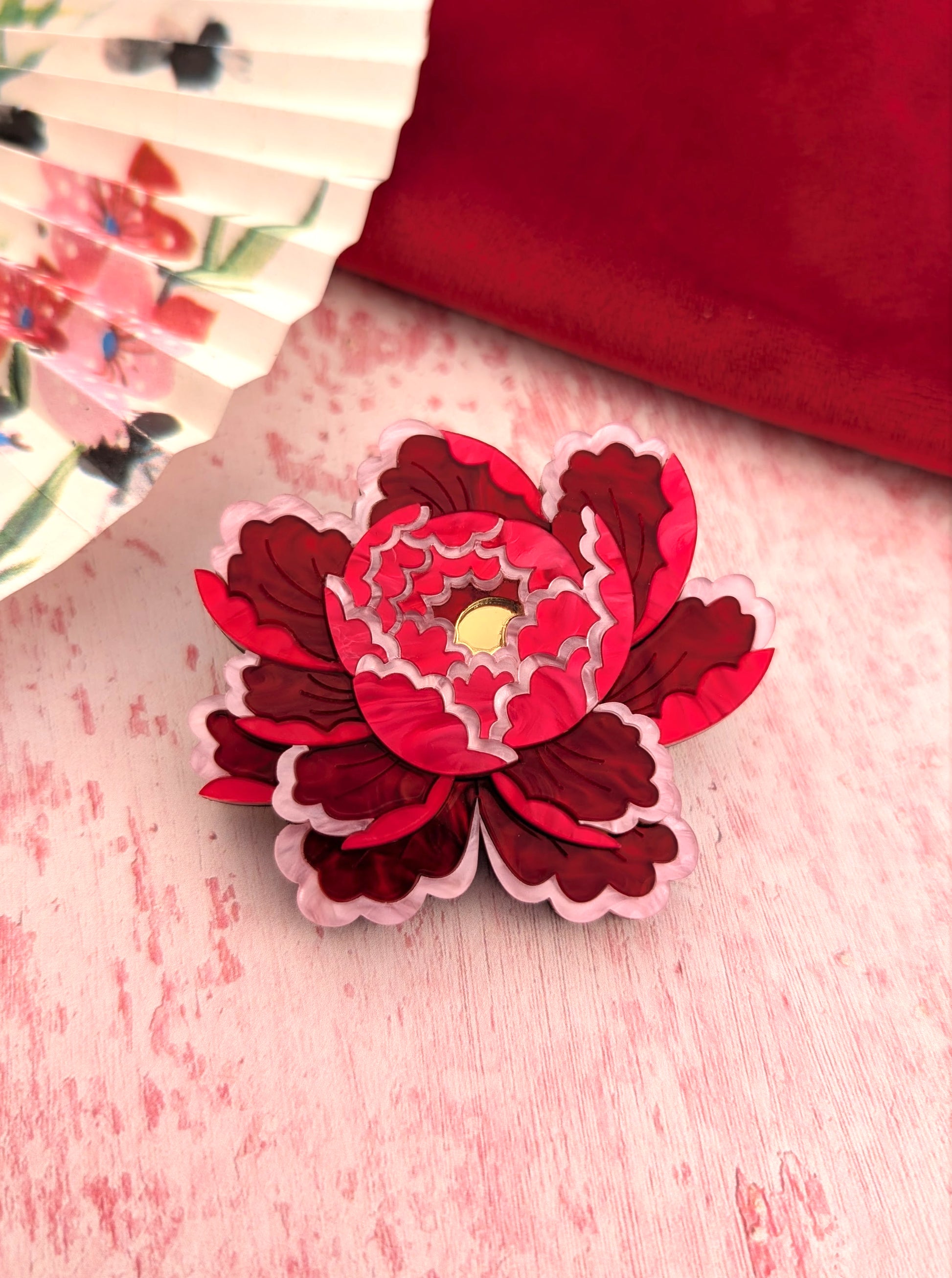 PRE ORDER Peony Inspired Flower Brooch or Pendant RED/PINK (one fully made brooch available)