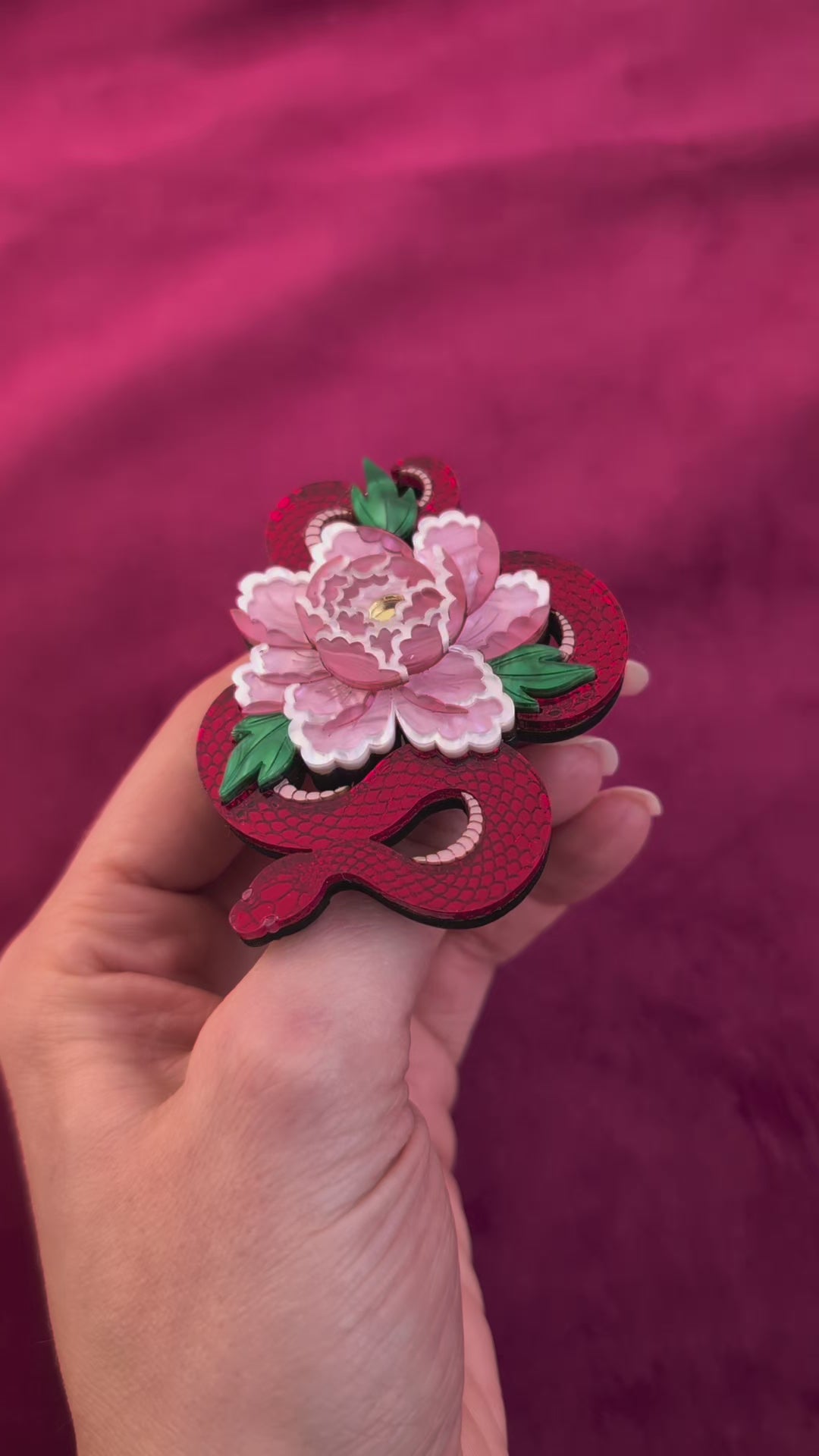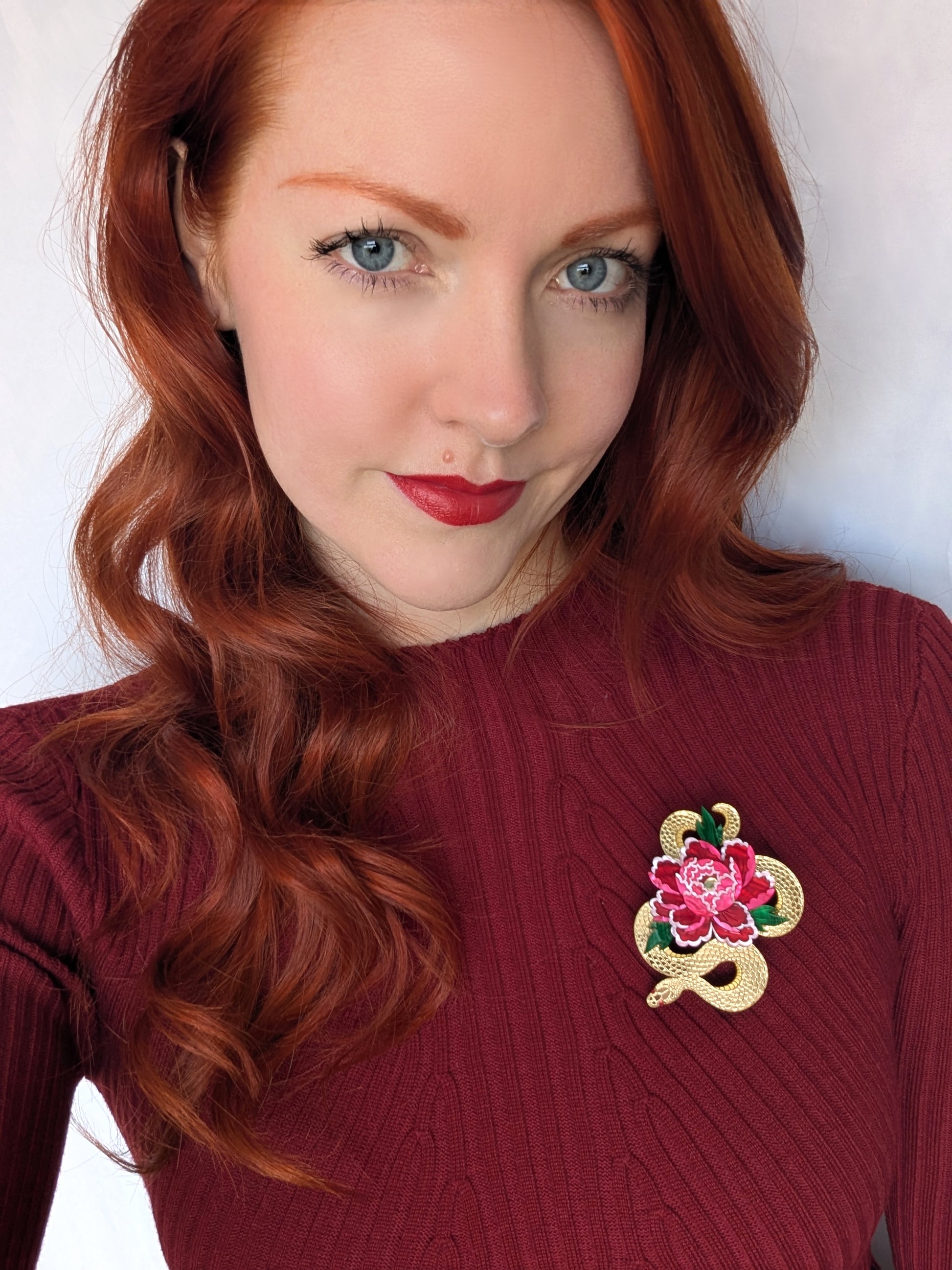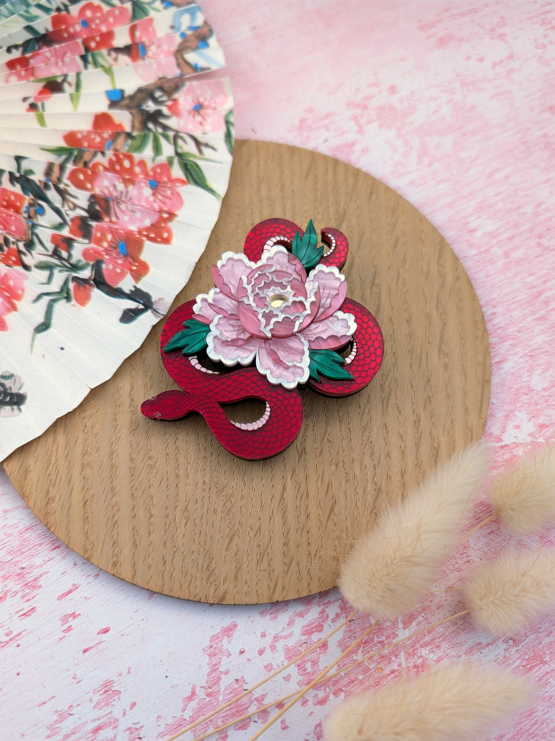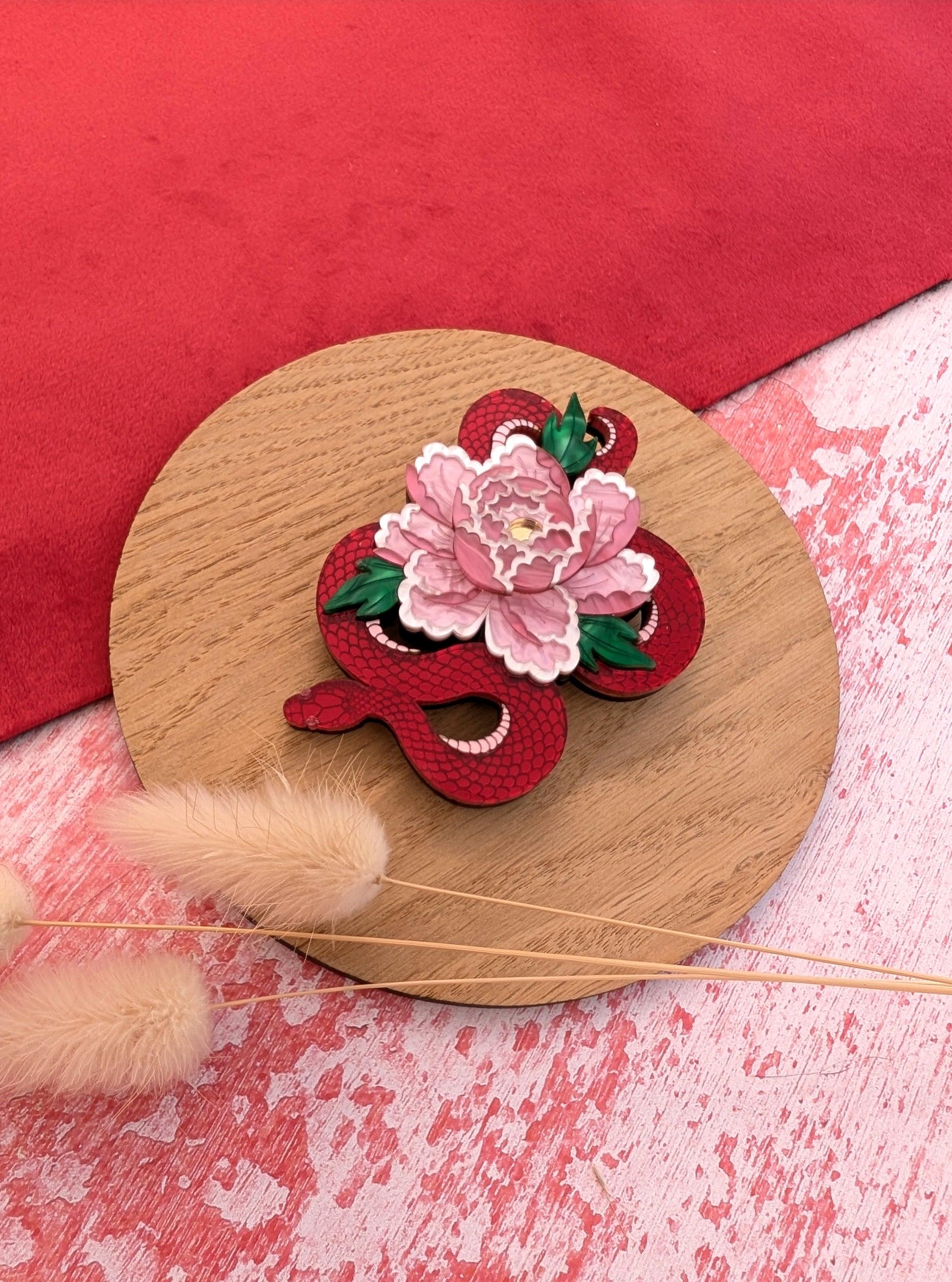 PRE ORDER Snake & Floral Small Brooch RED