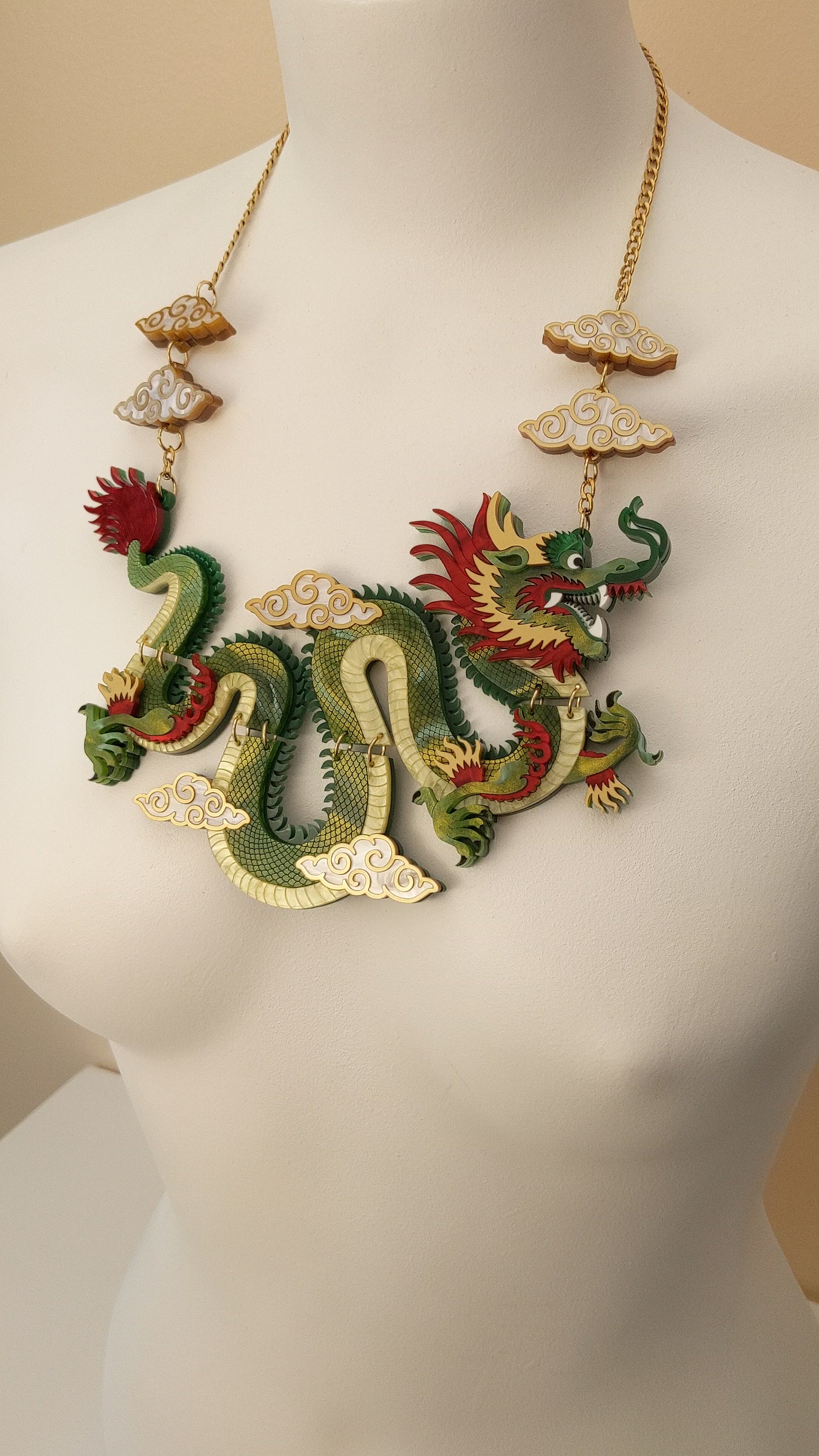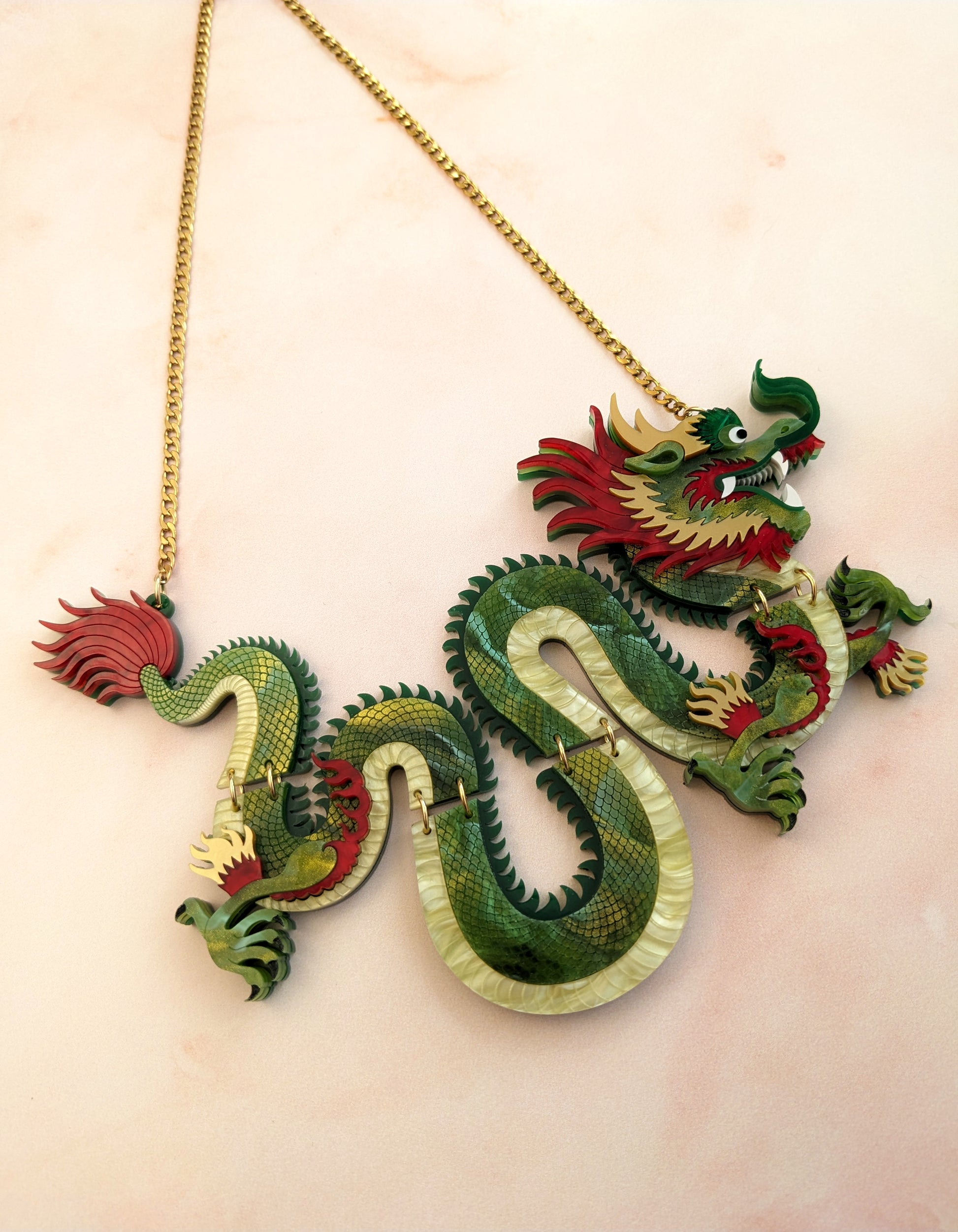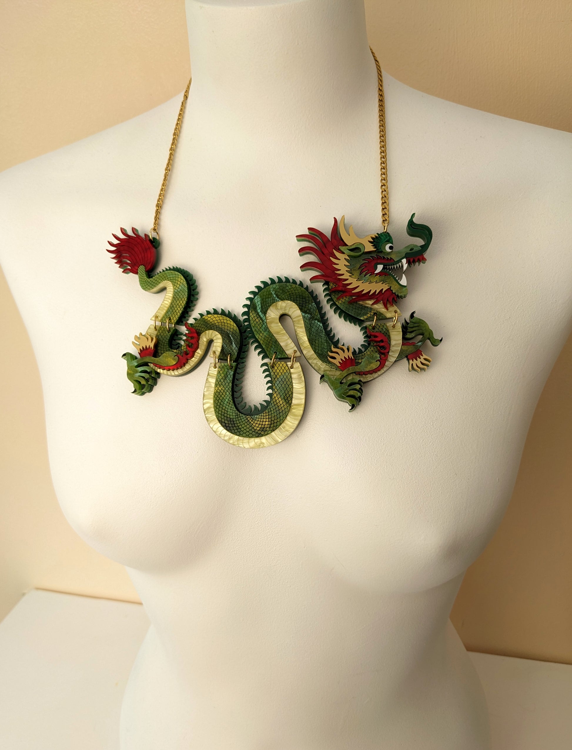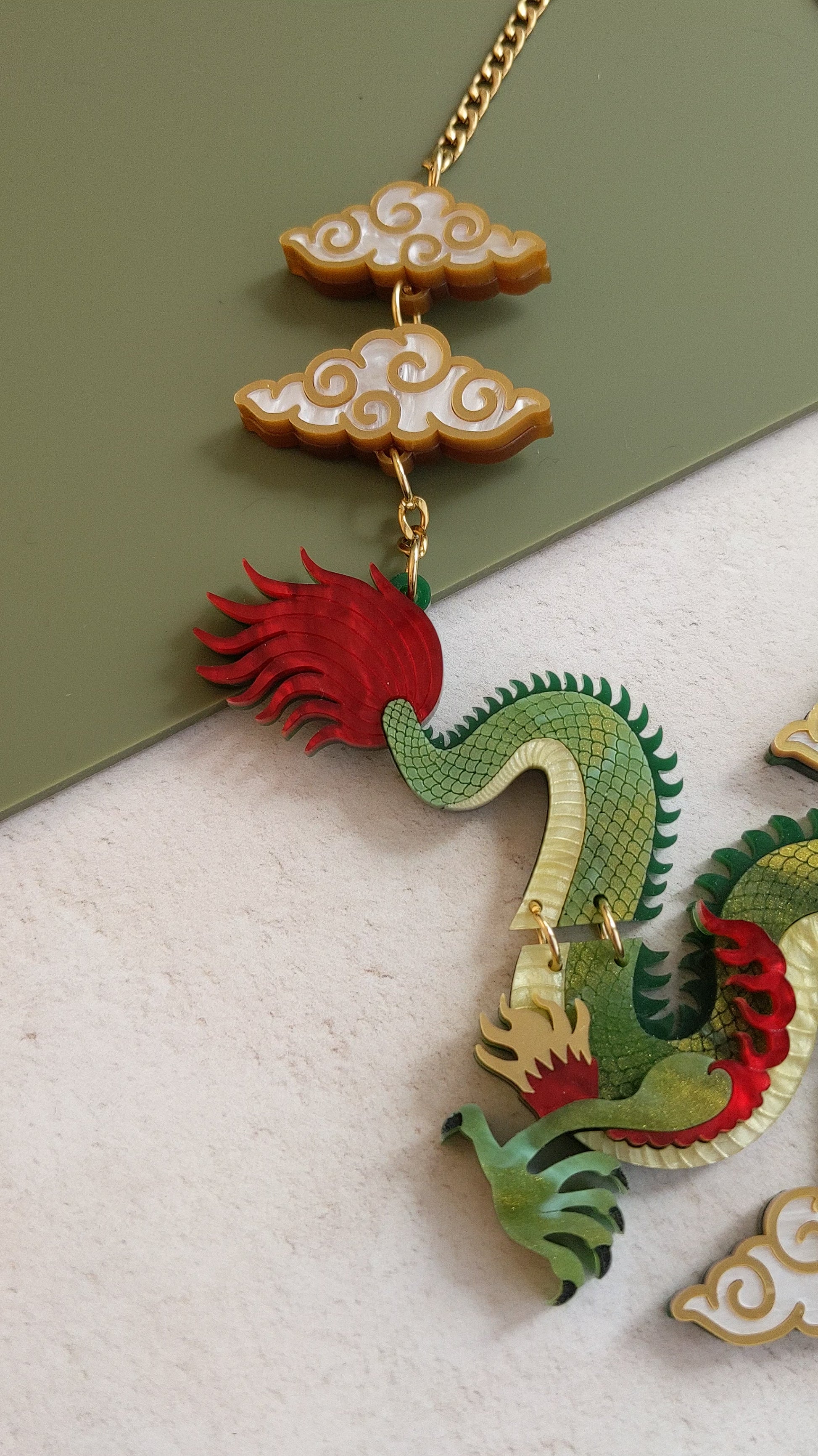 PRE ORDER Statement Chinese Dragon Necklace Without Clouds GREEN