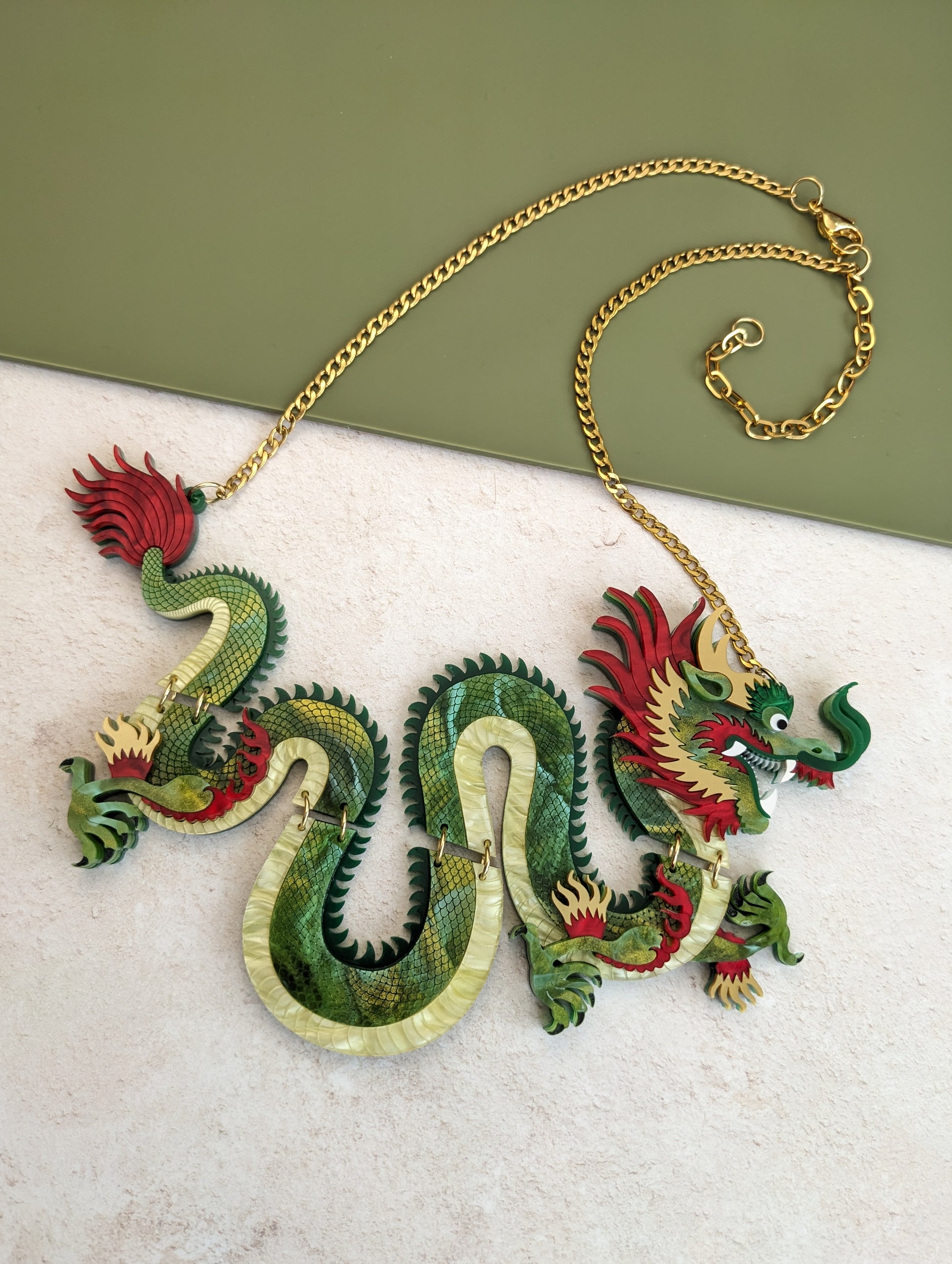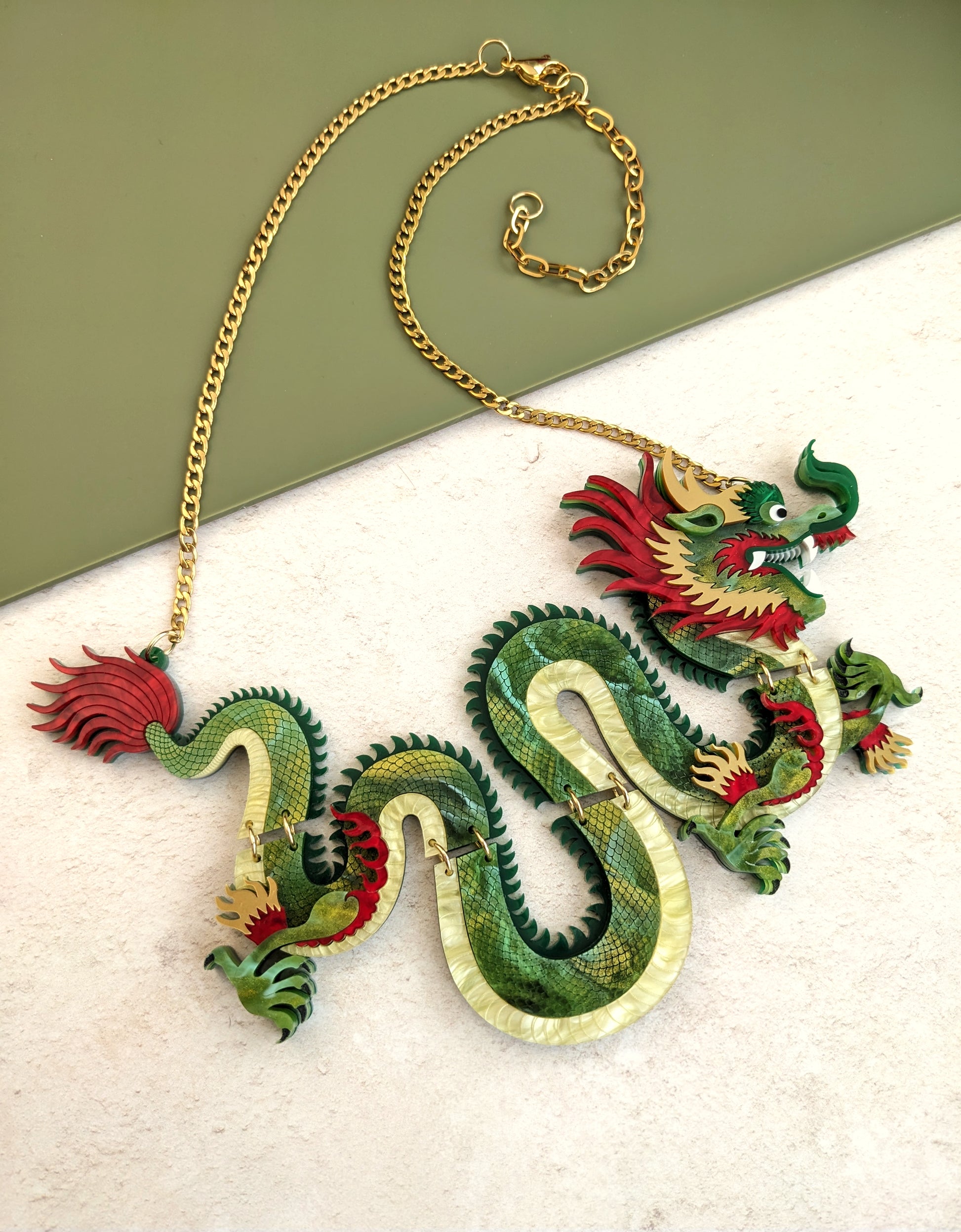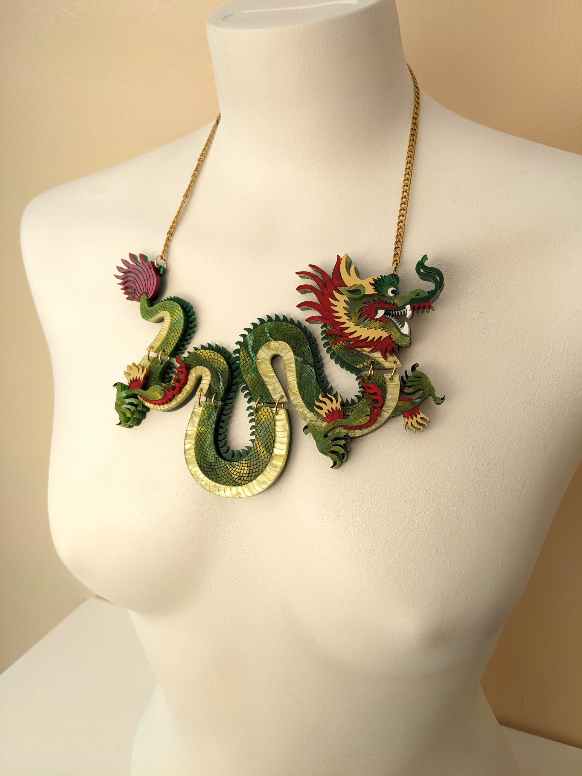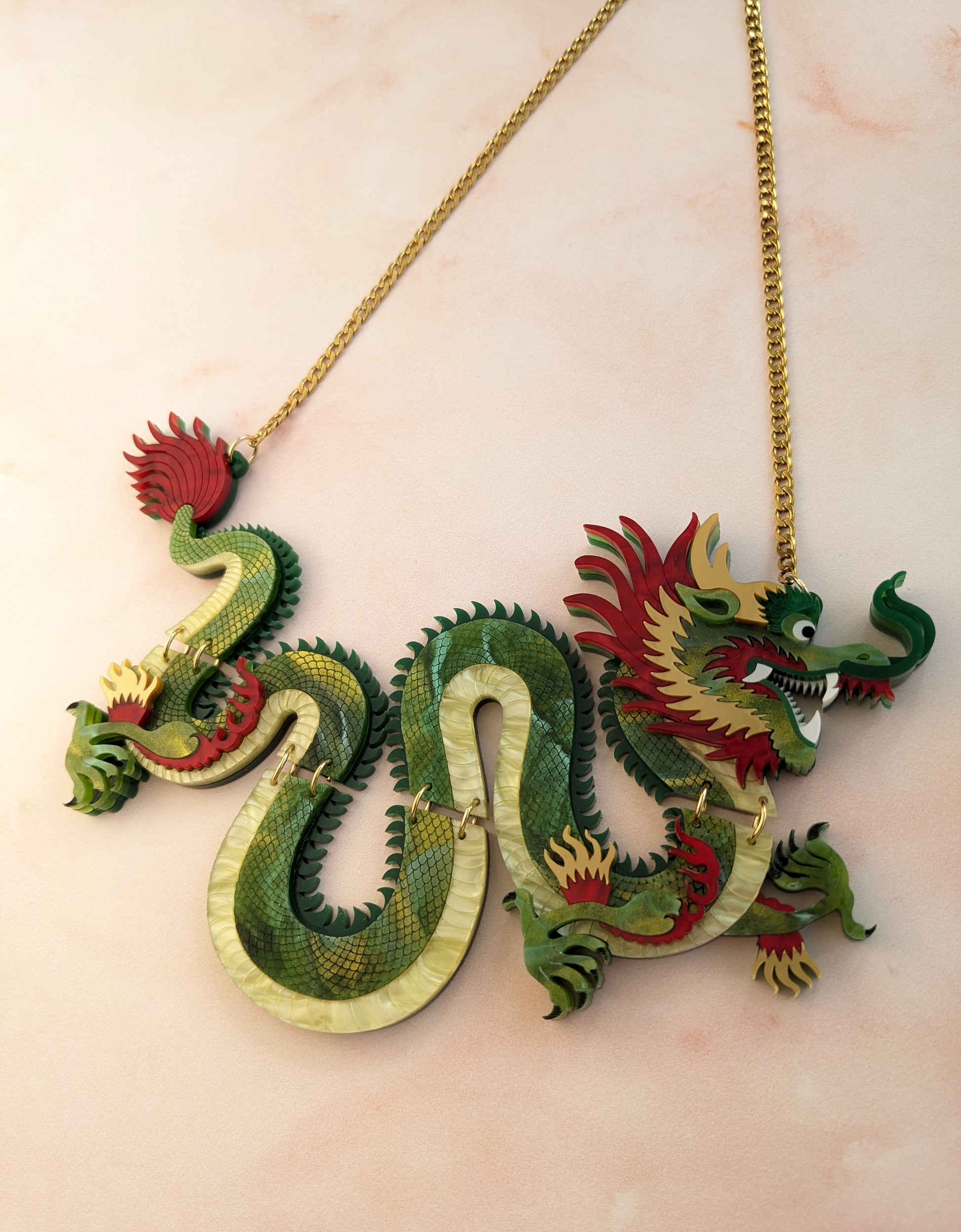 PRE ORDER Statement Chinese Dragon Necklace Without Clouds GREEN