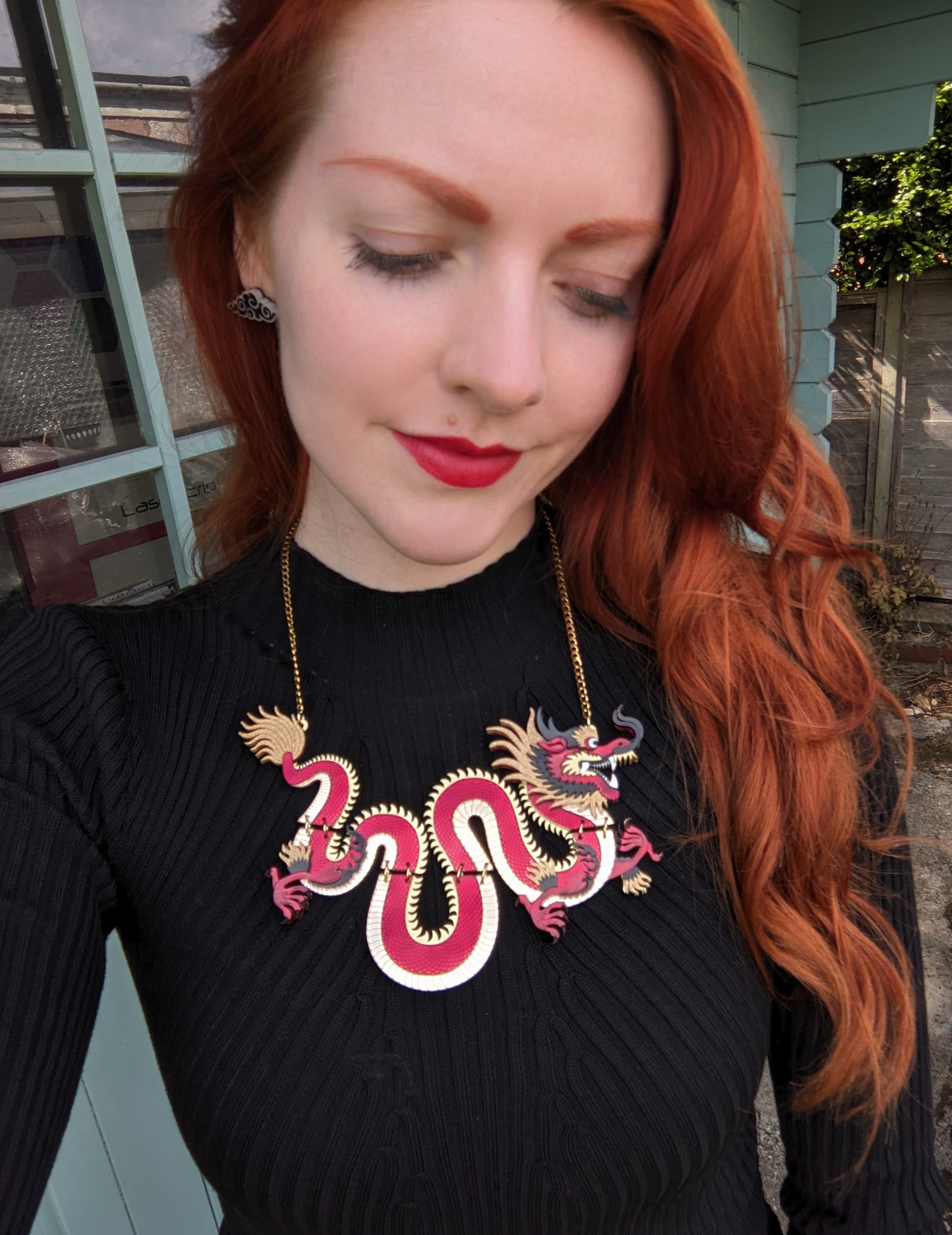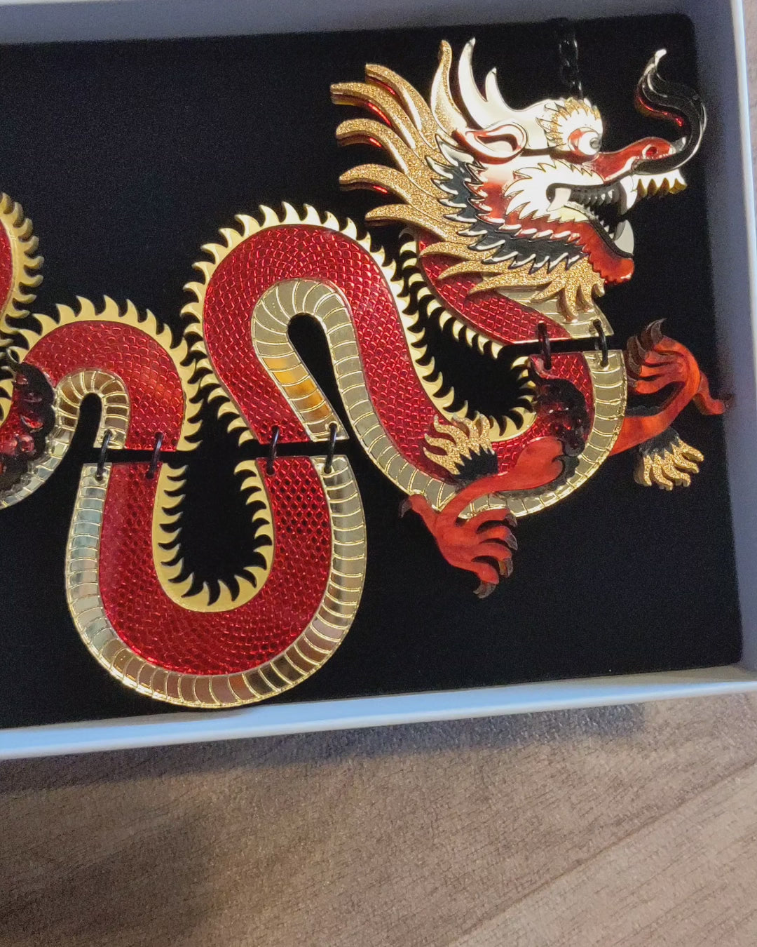 PRE ORDER Statement Chinese Dragon Necklace Without Clouds RED