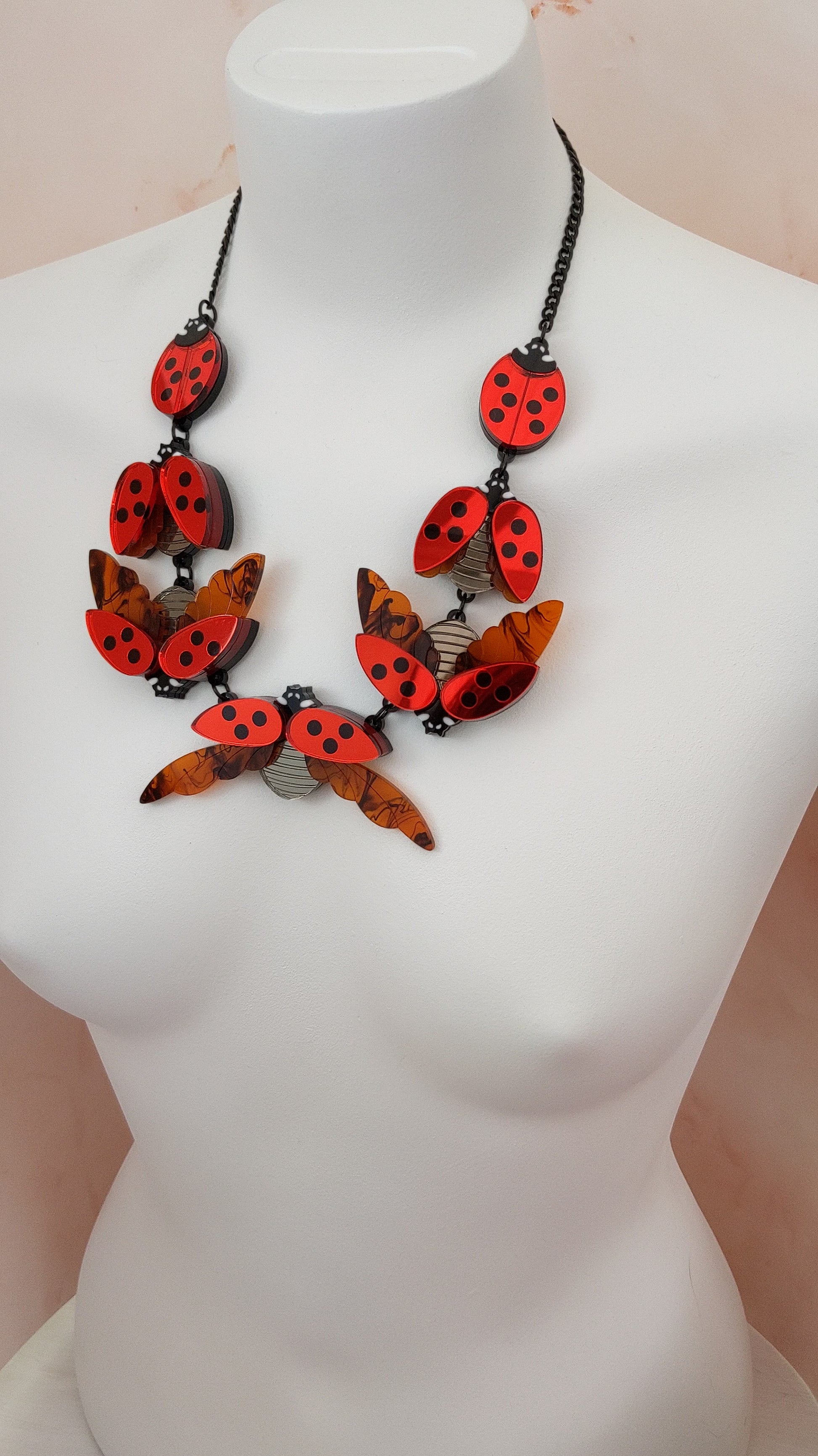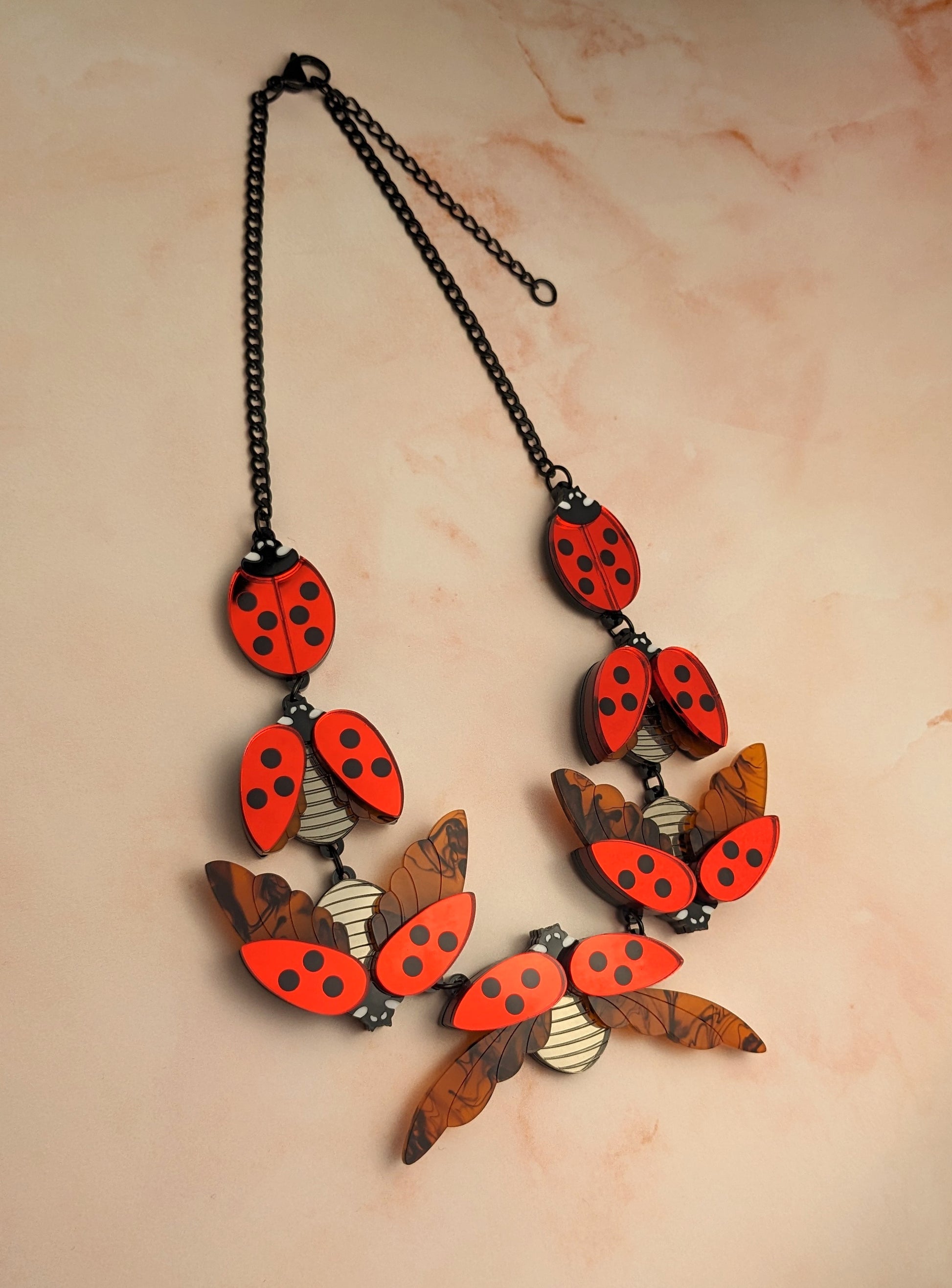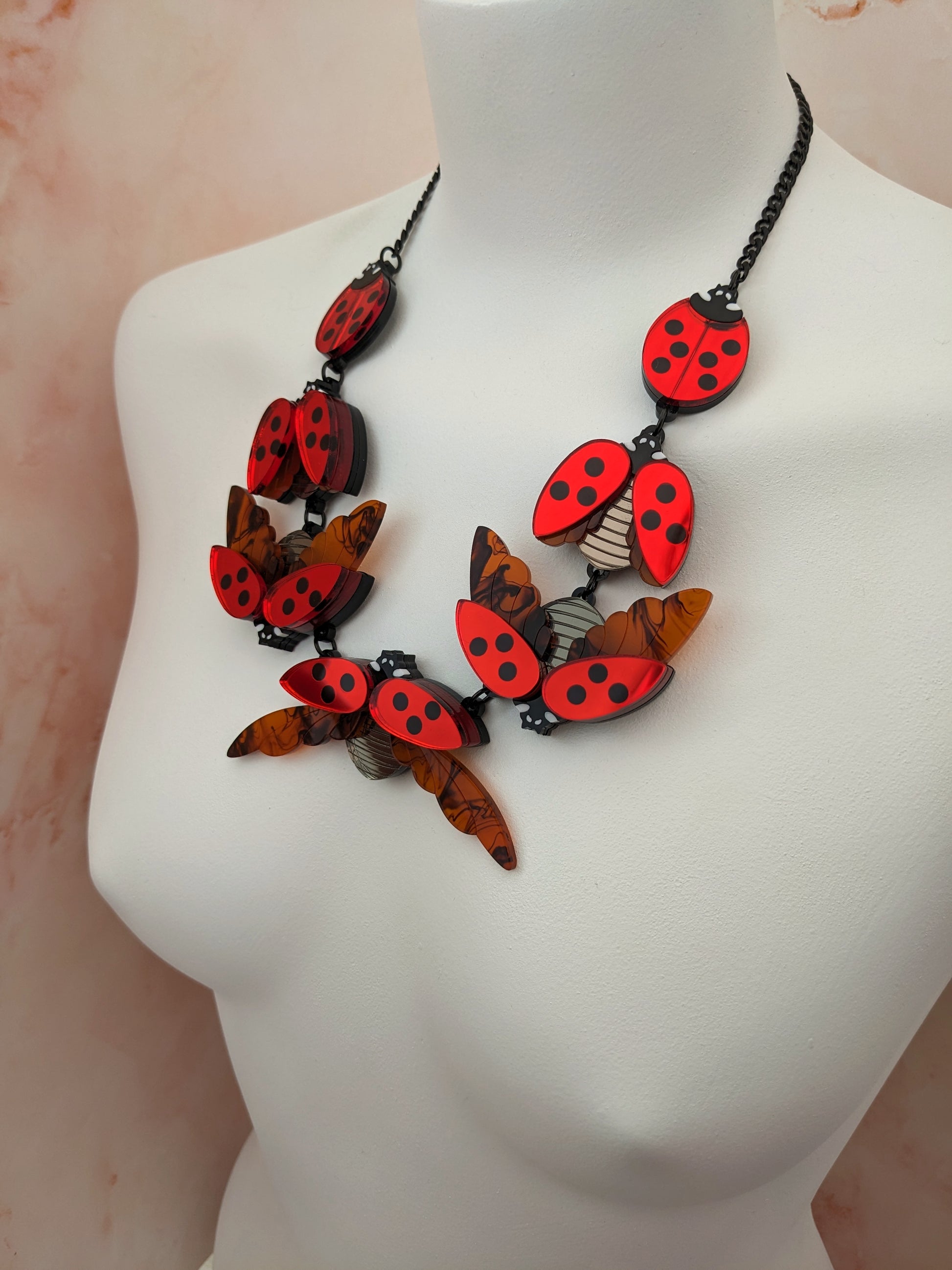 PRE ORDER Statement Ladybird Necklace Mirror Red